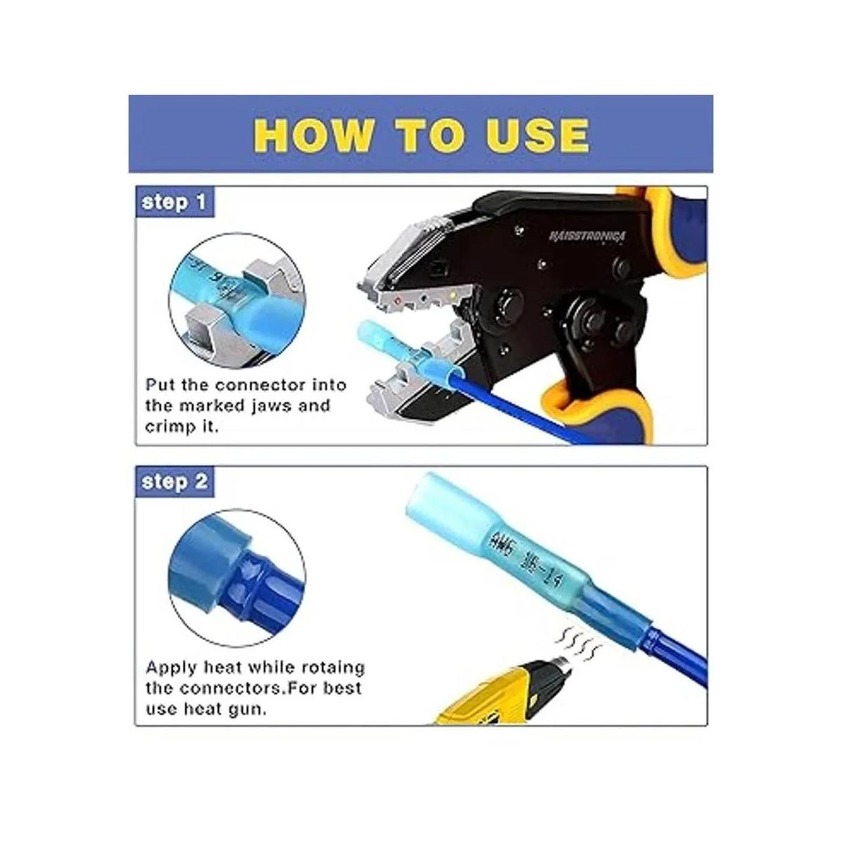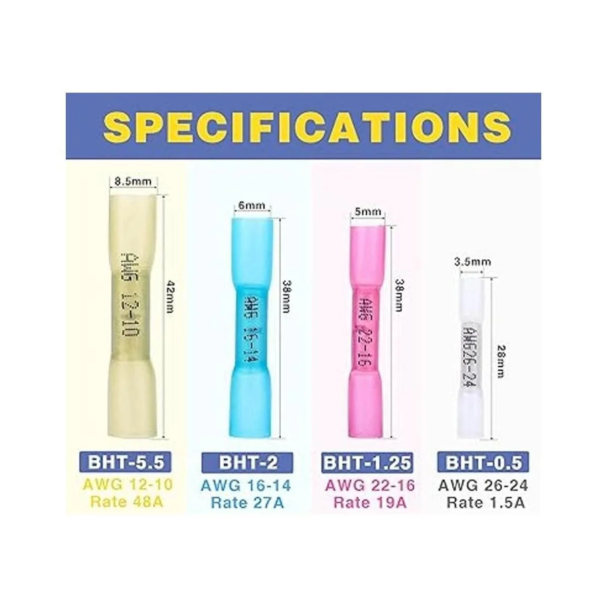 Termorretráctil de alta calidad: el tubo termorretráctil translúcido proporciona una alta resistencia a la tracción y resistencia al estiramiento y minimizar los daños mecánicos. El barril grueso garantiza un fuerte crimpado cada vez. La pared interior del tubo termorretráctil tiene suficiente adhesivo termofusible para garantizar la fiabilidad del rendimiento impermeable. Tu cable nunca se deslizará fuera de estos conectores de cable termorretráctiles.