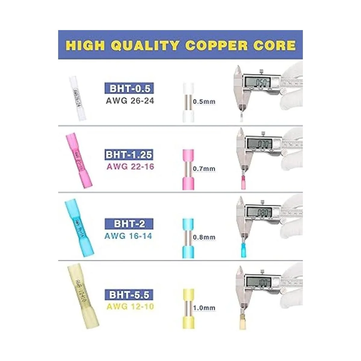 Núcleo de cobre de alta calidad: los conectores termorretráctiles utilizan un núcleo de cobre con una mayor calificación de grosor. Esto hace que tu proyecto de conexión sea más seguro y satisface mejor las necesidades de calidad de nuestros clientes