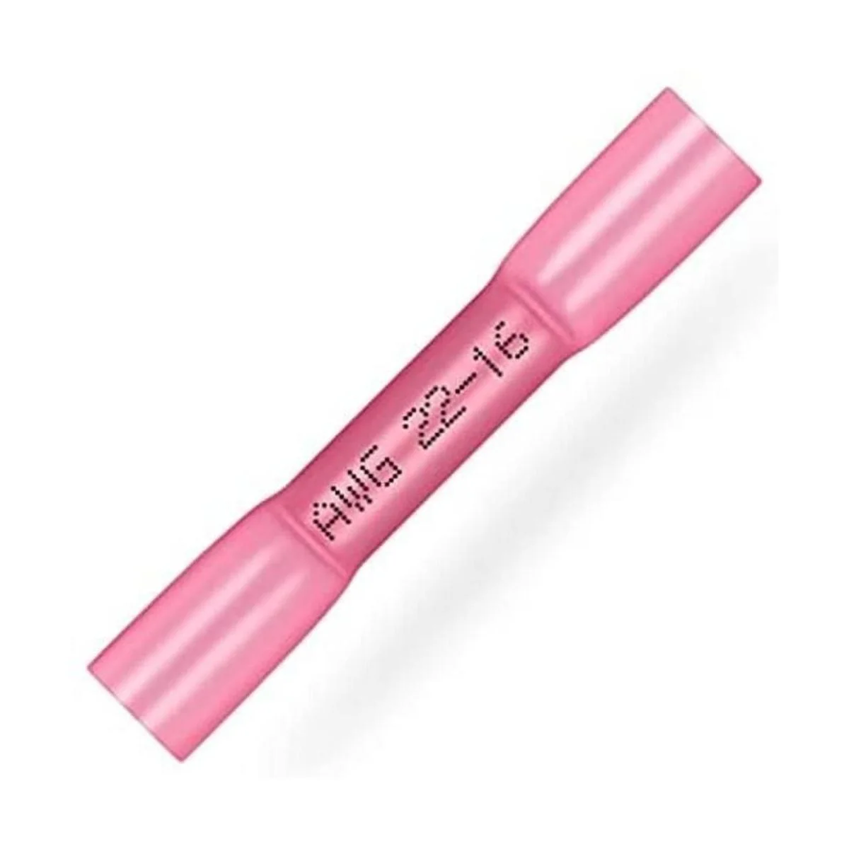 haisstronica 100 conectores de tope termocontraíbles rojos AWG2216, conectores de alambre termocontraíble impermeables de grado marino, cobre rojo estañado, 0.028 in, conectores eléctricos aislados de empalme de extremo crimpado