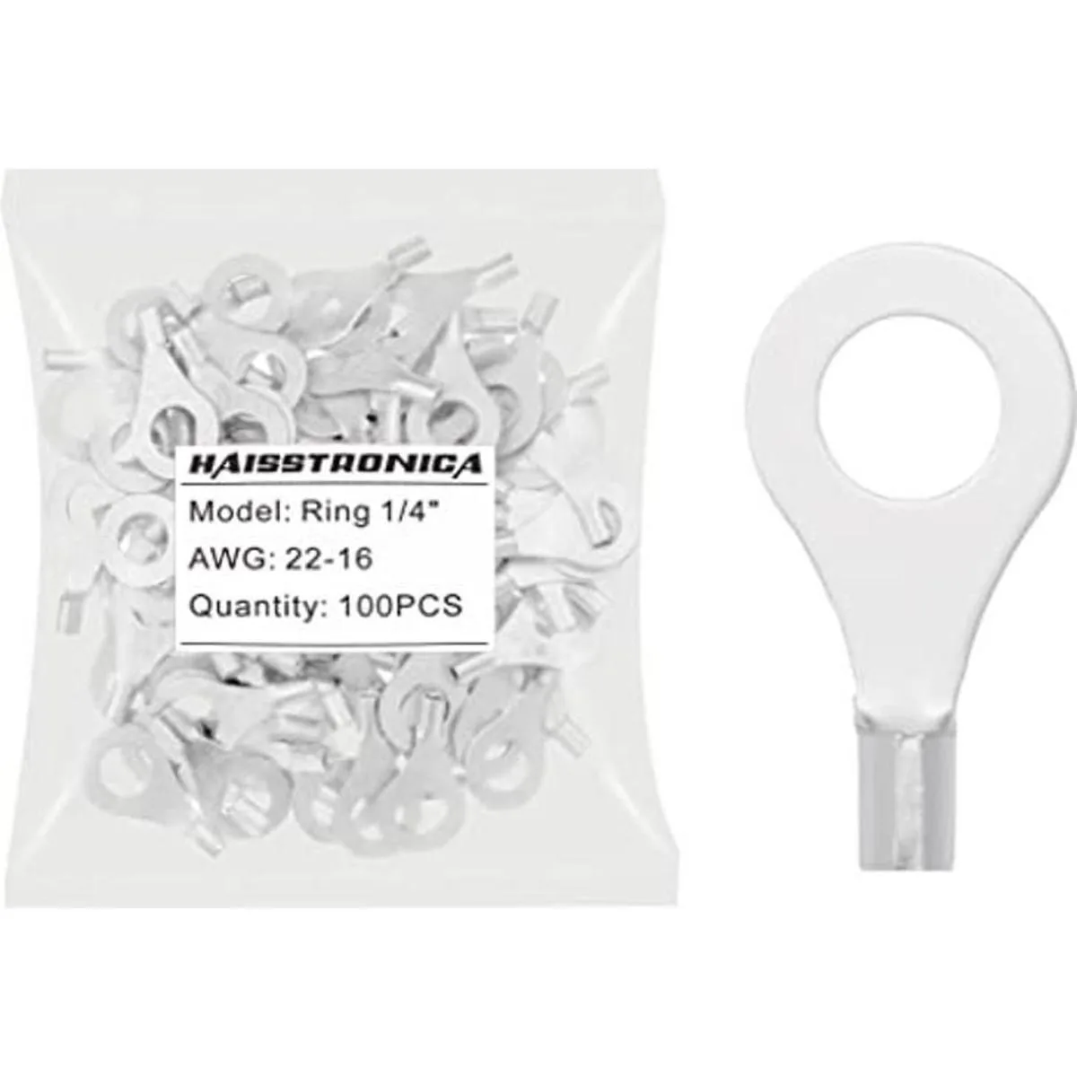 haisstronica 100 terminales de anillo de 14 pulgadas, AWG 2216 con costura soldada sin aislamiento
