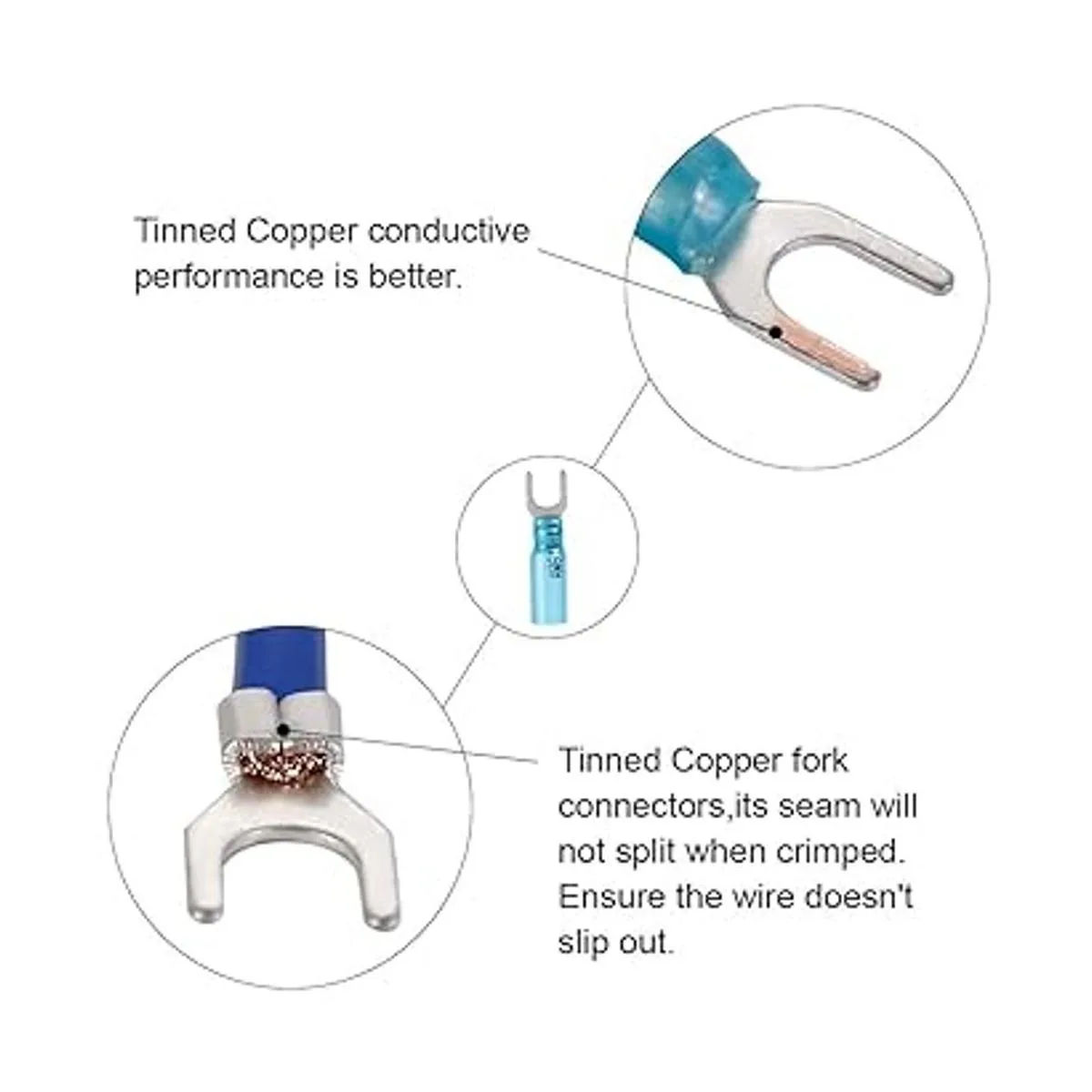 Sólido para rocas: los conectores de horquilla Haisstronica de tamaño 10 tienen el mejor barril de cobre estañado grueso para sostener cables de 12 a 10 AWG. Grosor del cobre de 0.039 in. Fuerte conductividad.