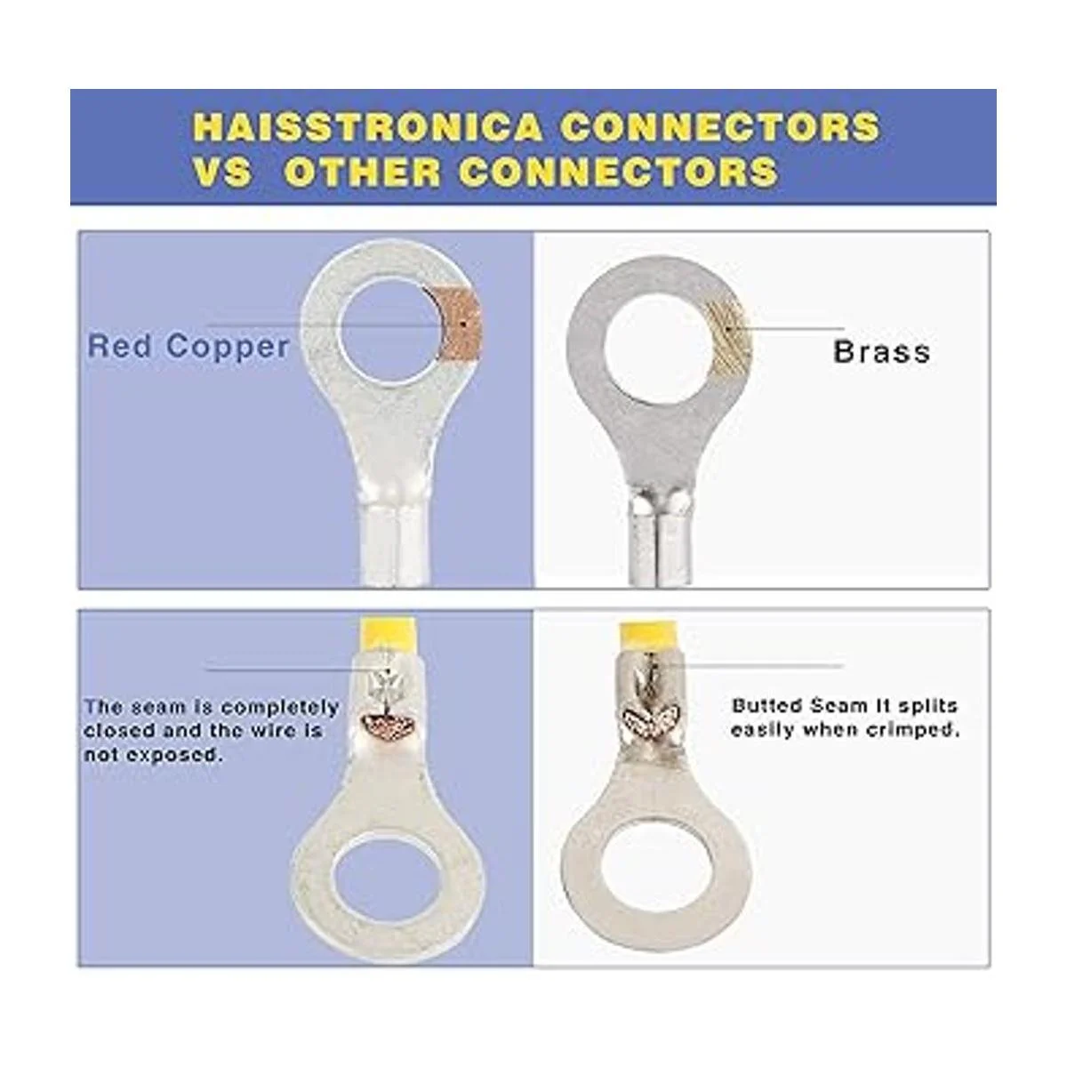 Vive sin límites: no te dejes detenido por conectores de alambre de aspecto humilde. Los conectores termorretráctiles Haisstronica están hechos de cobre estañado. El proceso de estañado está diseñado para evitar eficazmente que el cobre se oxide y reducir la resistencia. Mientras que el cobre de mayor pureza mejora la conductividad eléctrica.