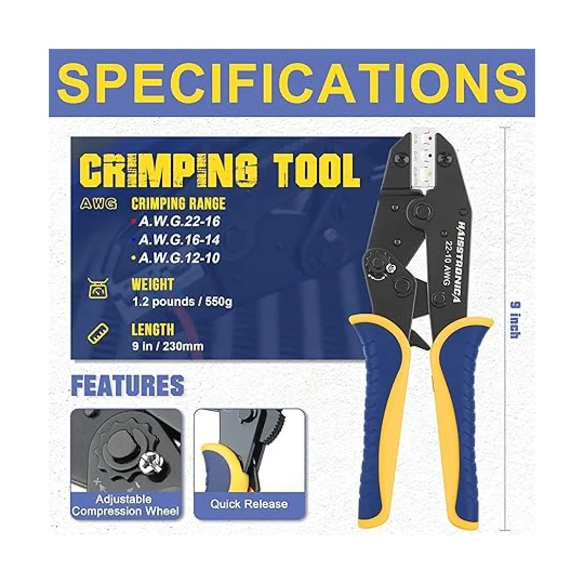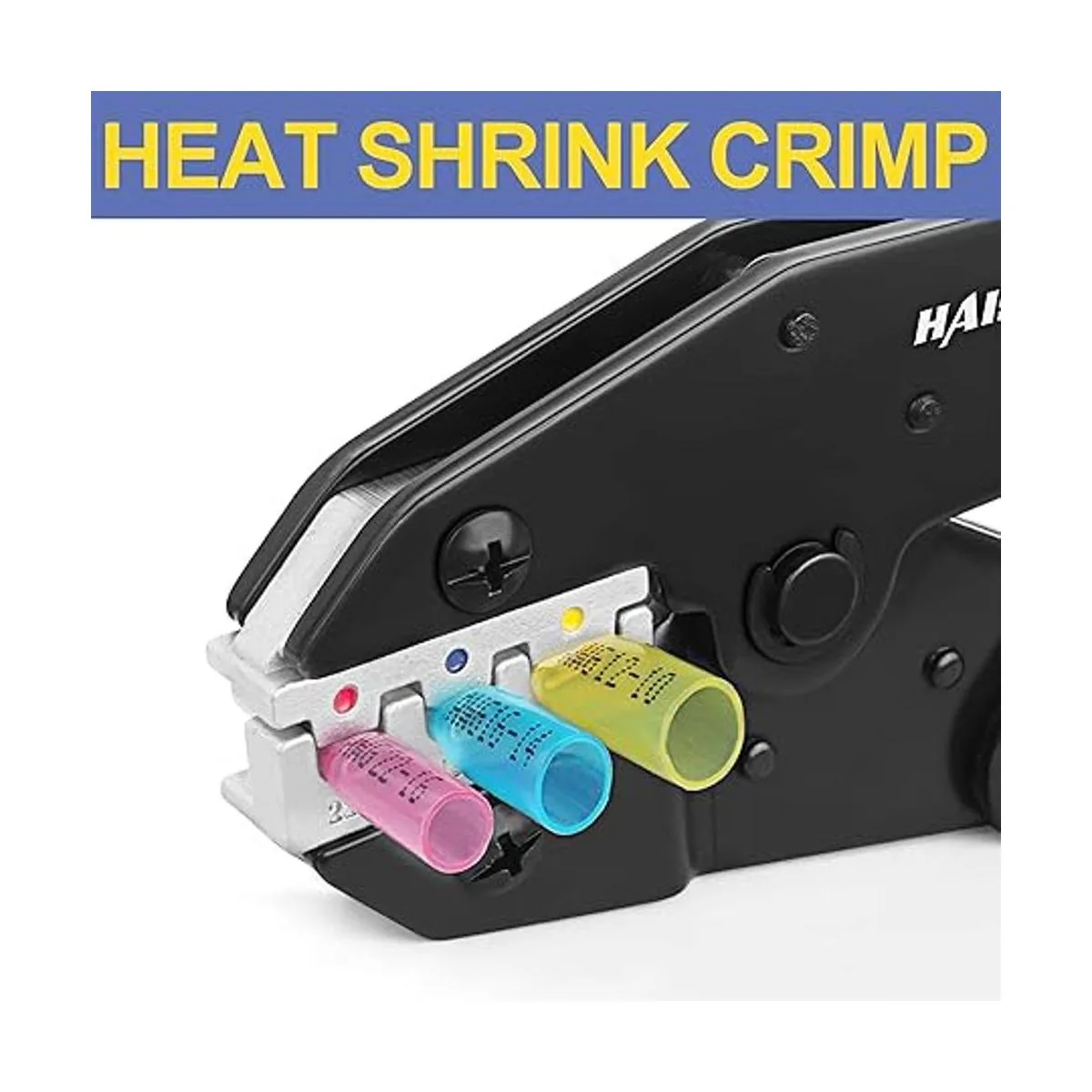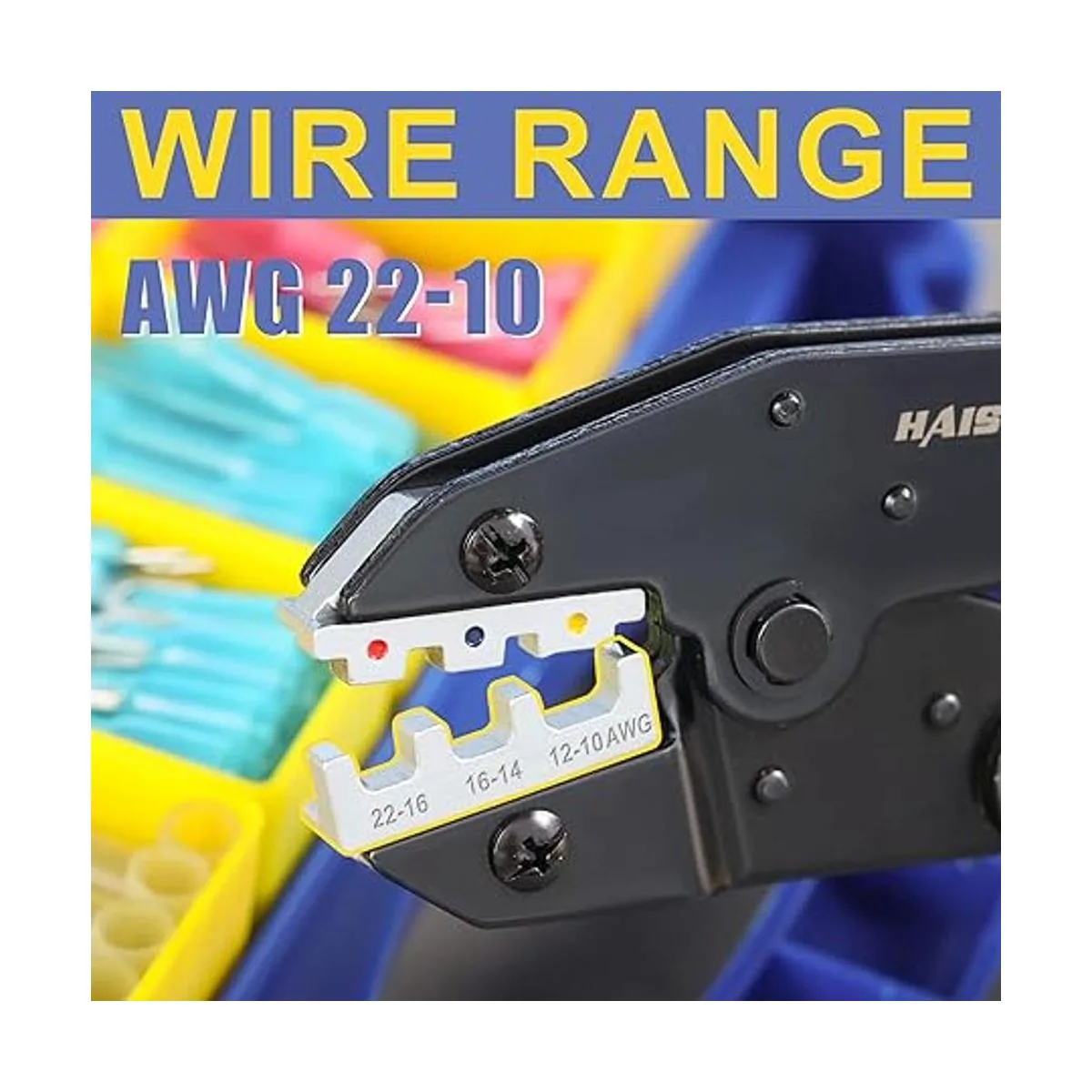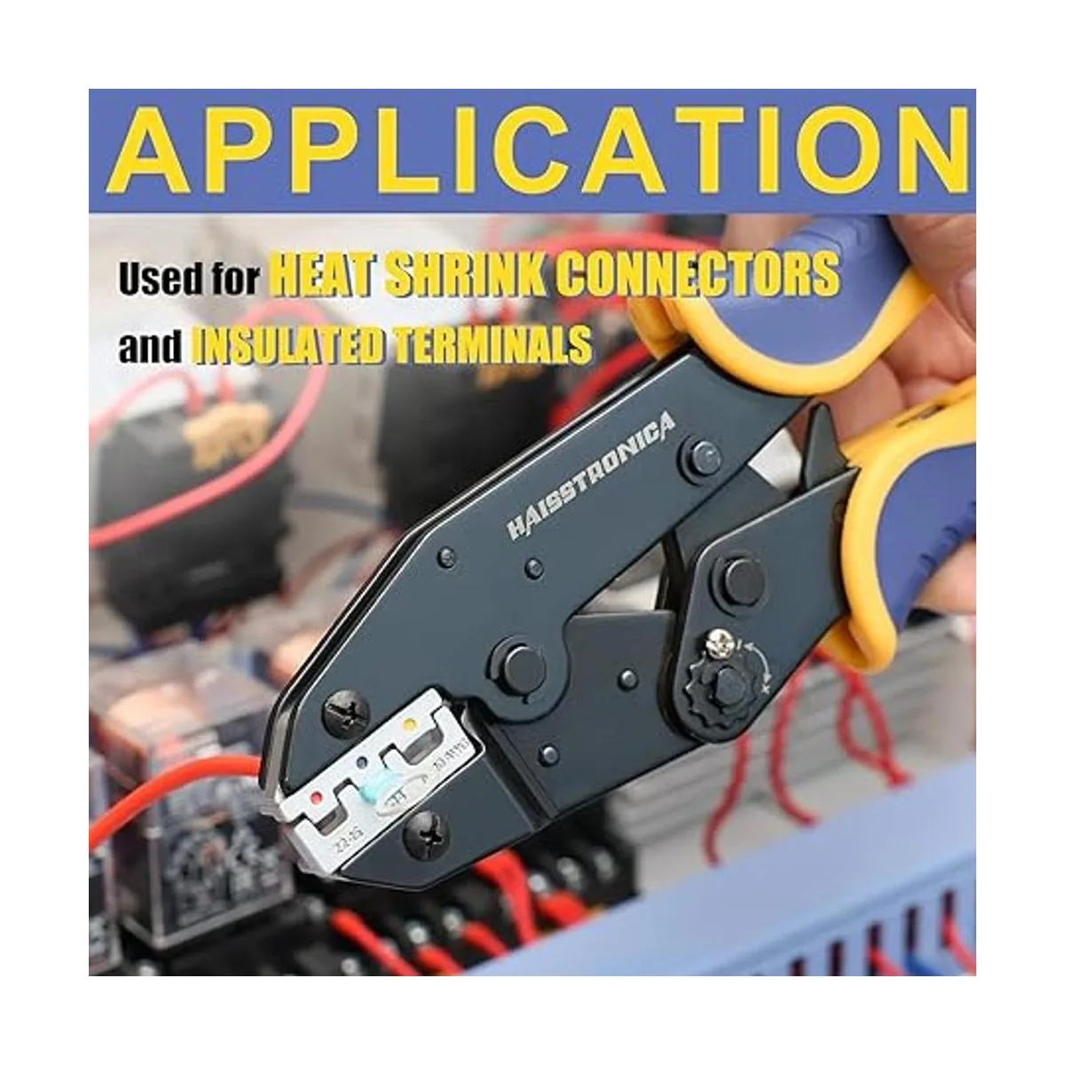 Haisstronica Herramienta de crimpado para conectores termorretráctiles, crimpadora para terminales de alambre de carraca, para conectores de nailon aislados y conectores de cable eléctrico HS8327