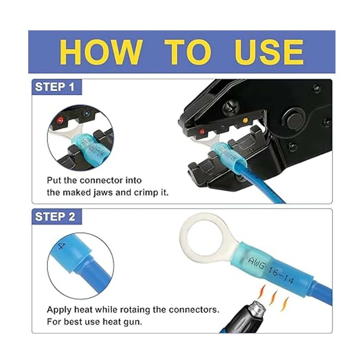 Herramienta de crimpado: un ajuste perfecto para los conectores termorretráctiles de Haisstronica. La mordaza profesional puede crimpar rápida y fácilmente varios tipos de conectores termorretráctiles. La hendidura no dañará la carcasa durante el crimpado. Atrapa firmemente los cables. Cada herramienta crimpadora está marcada con rojo/azul/amarillo para una fácil identificación.