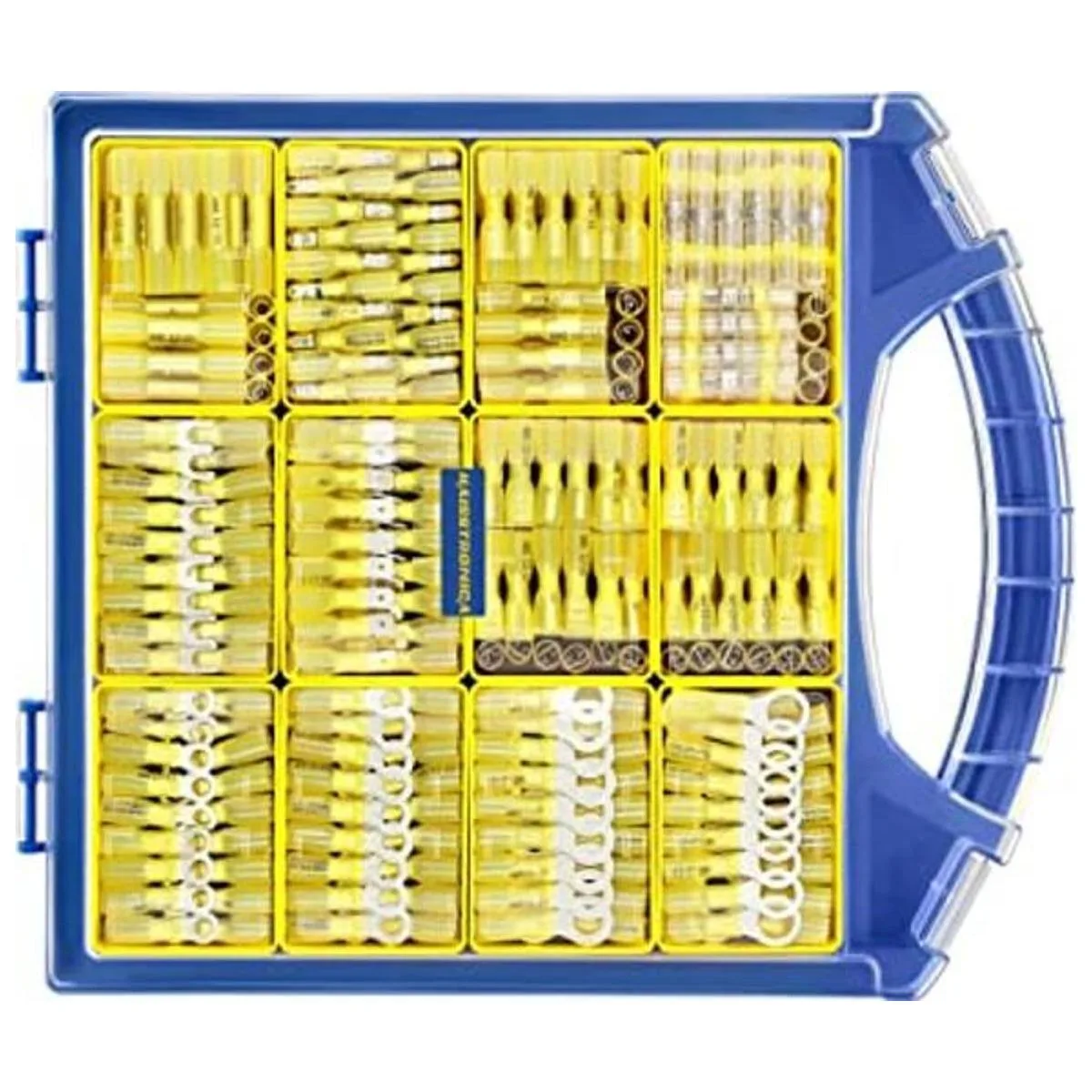 Aplicaciones casi infinitas: incluye todo lo necesario para calibre de alambre AWG 1210. Conectores termorretráctiles, terminales de anillo, terminales de pala, conectores de horquilla, conectores de bala y conectores de cable de sellado de soldadura. No necesitas comprar conectores adicionales.