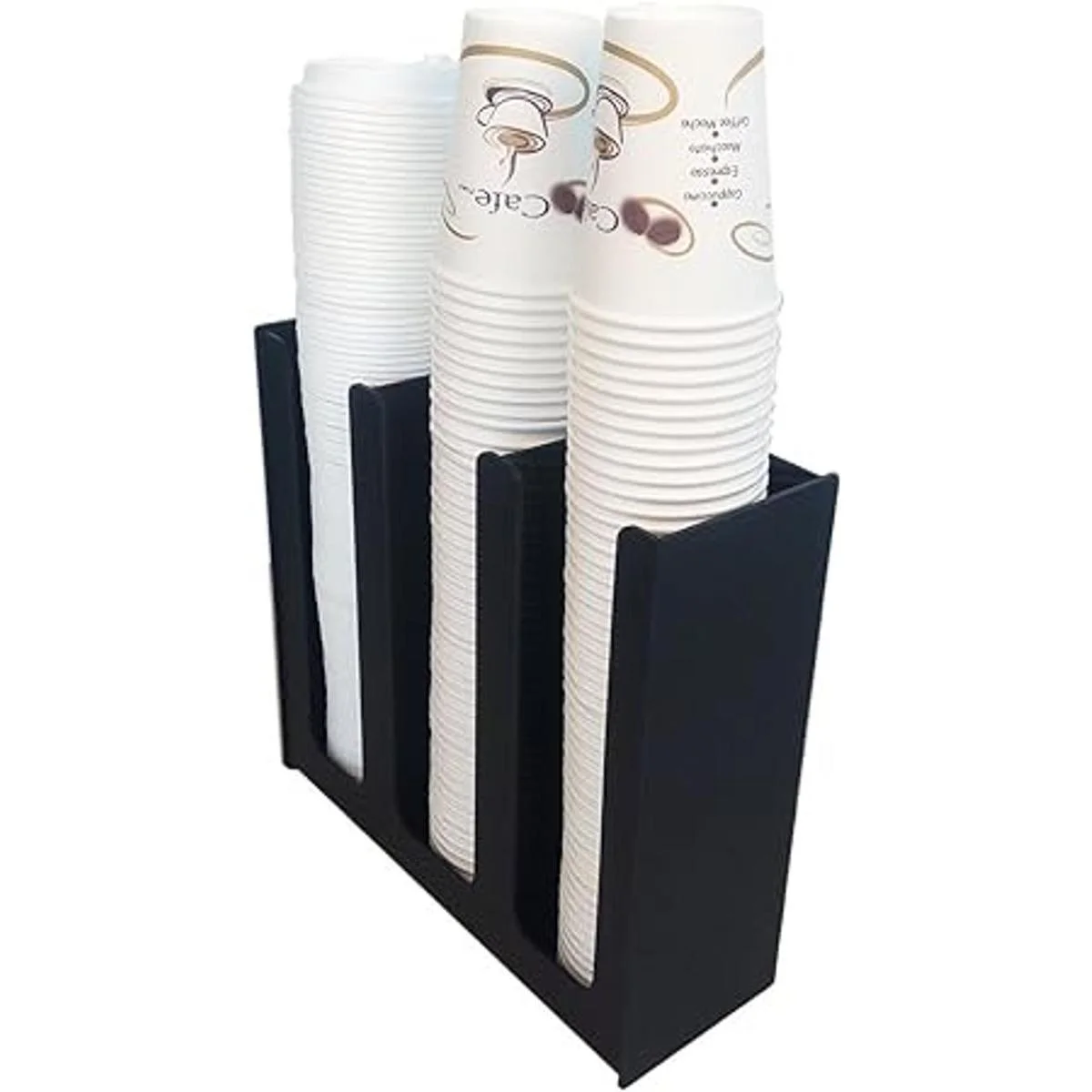 HAITIAN Portavasos de papel de 0.157 in de grosor, material ABS, color negro, apto para vasos de papel de 10 a 26 onzas, 3 compartimentos, sobre tamaño 12.7 pulgadas de largo x 11.7 pulgadas de alto x 4.3 pulgadas de ancho. para sala de descanso, hotel, restaurante, cafeterías
