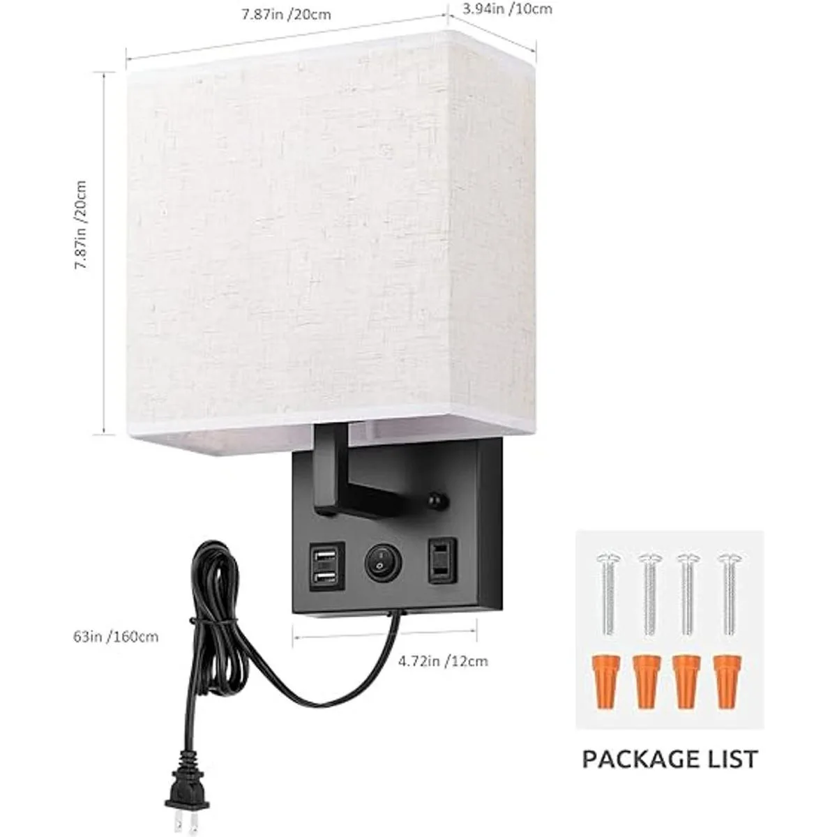 HAITRAL Apliques de pared enchufables con bombillas, lámparas de pared para dormitorio con USB y tomacorriente, juego de 2 apliques de pared con interruptor y bombilla, accesorios de pared para sala de estar, dormitorio incluye bombillas, color negro