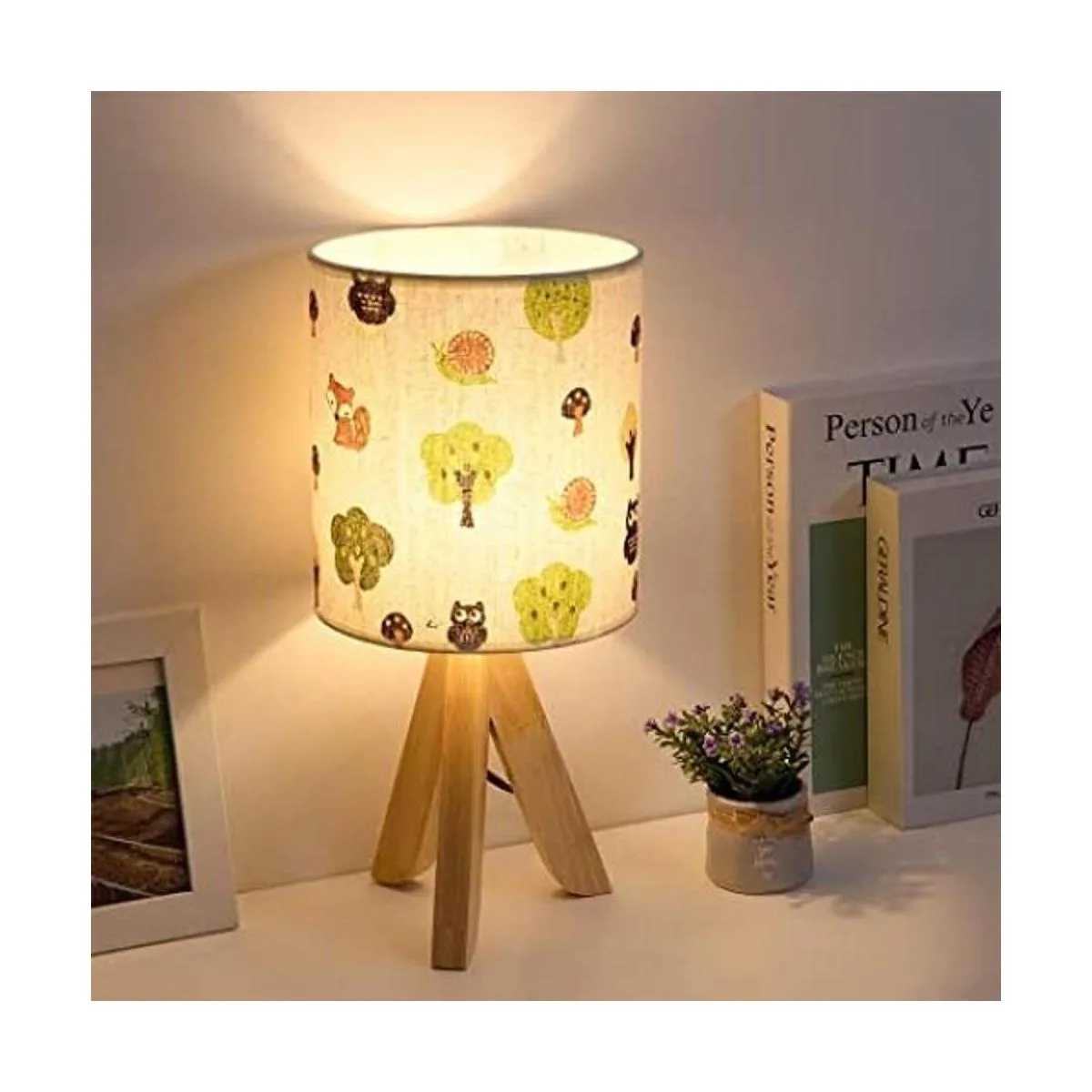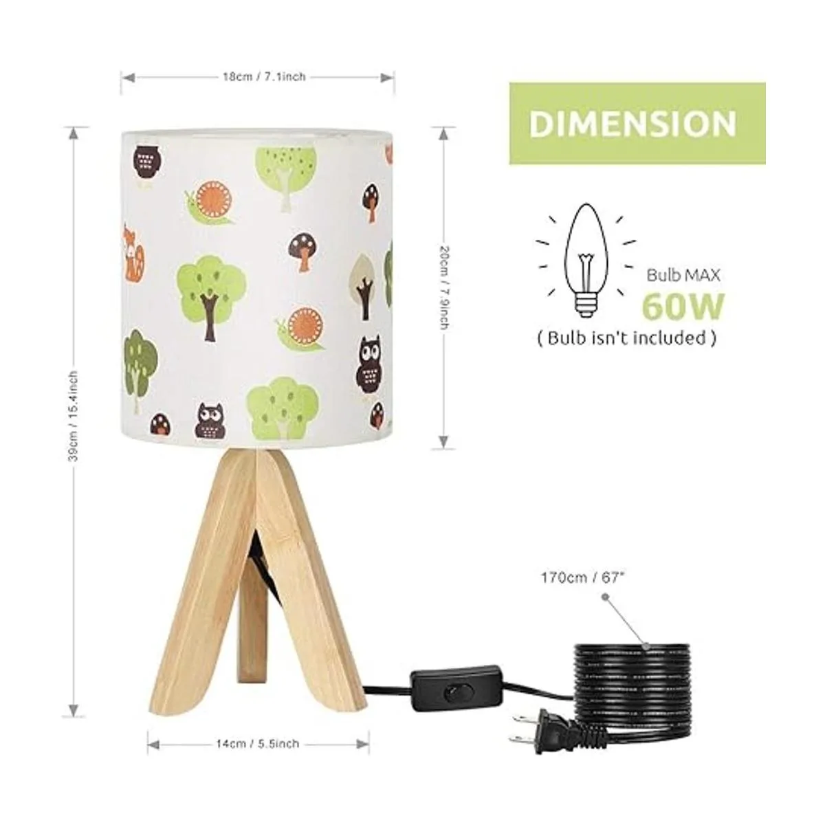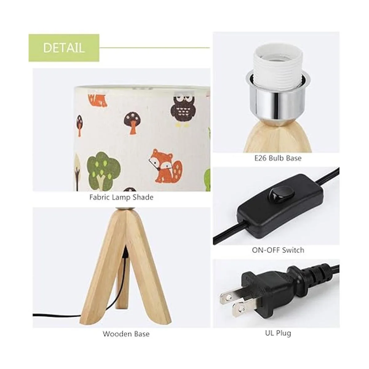 HAITRAL Lámpara de mesa de trípode, lámpara de mesita de noche para niños con pantalla de tela de dibujos animados, lámpara de mesita de noche moderna para dormitorios, cuarto de bebé, sala de estar, estante de juego para habitación de los niños