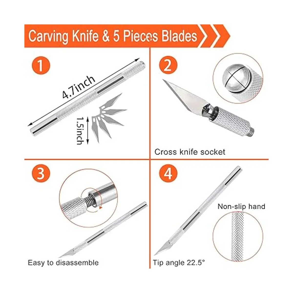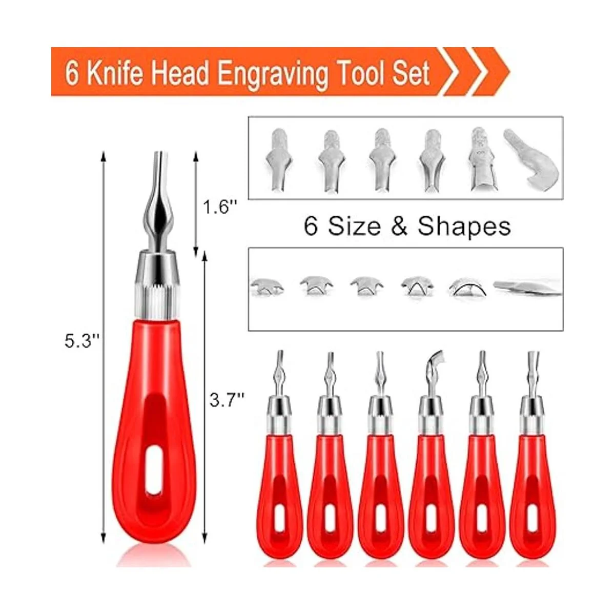 Herramientas de corte de linóleo 6 en 1 cuchillo de tallado 5 en 1 que se puede utilizar intercambiablemente muchas veces: 1 mango de plástico con 6 cortadores diferentes para satisfacer tus diferentes necesidades. Este kit de cortador de linóleo tiene un diseño de agujero para colgar para un fácil almacenamiento. 1 cuchillo de tallado con 5 cuchillas afiladas y duraderas, la punta de 22.5 tiene una fuerte capacidad de tallado para un corte y corte precisos. Adecuado para sellos de goma, arte de papel, plástico, tela, hoja de metal fina, cuero, etc.