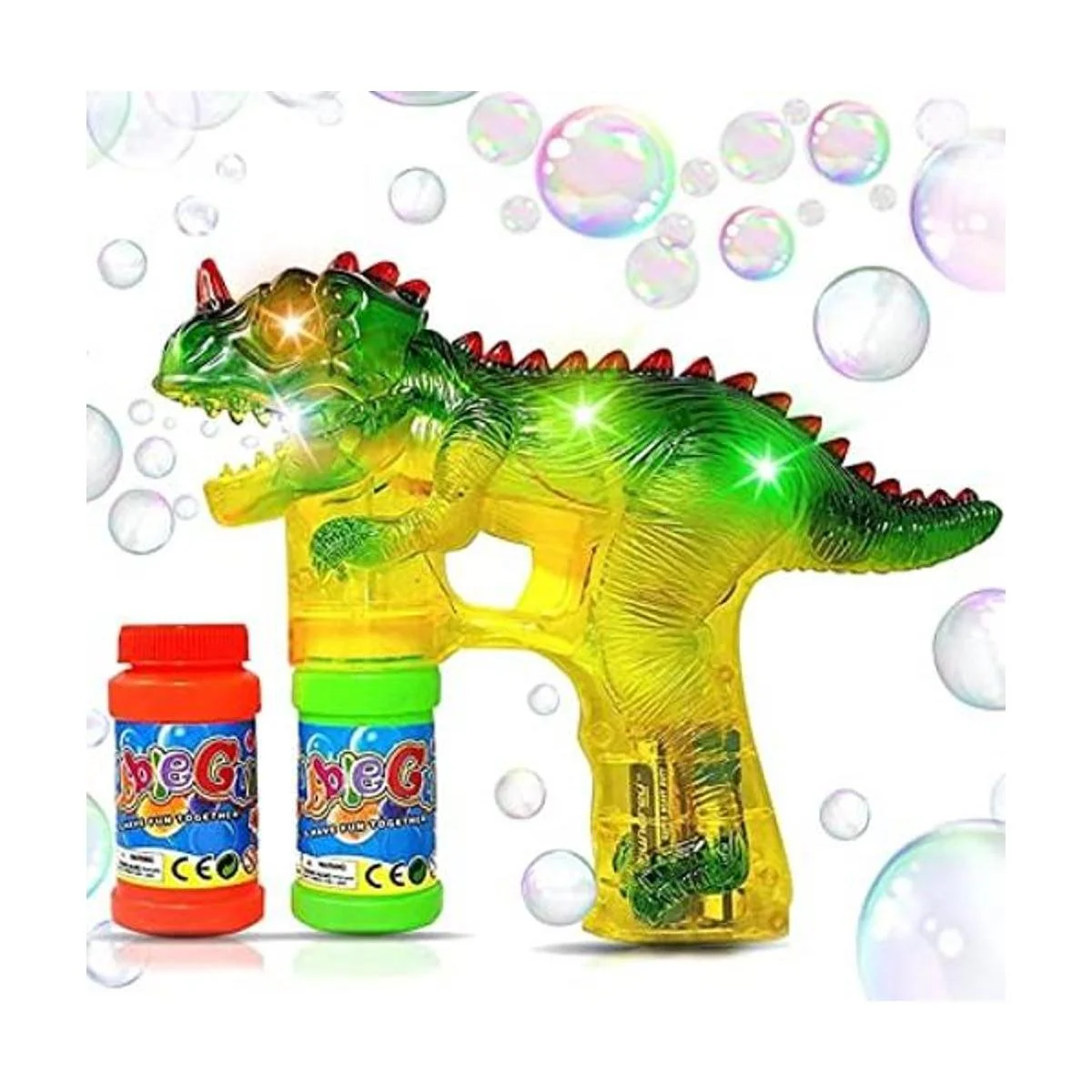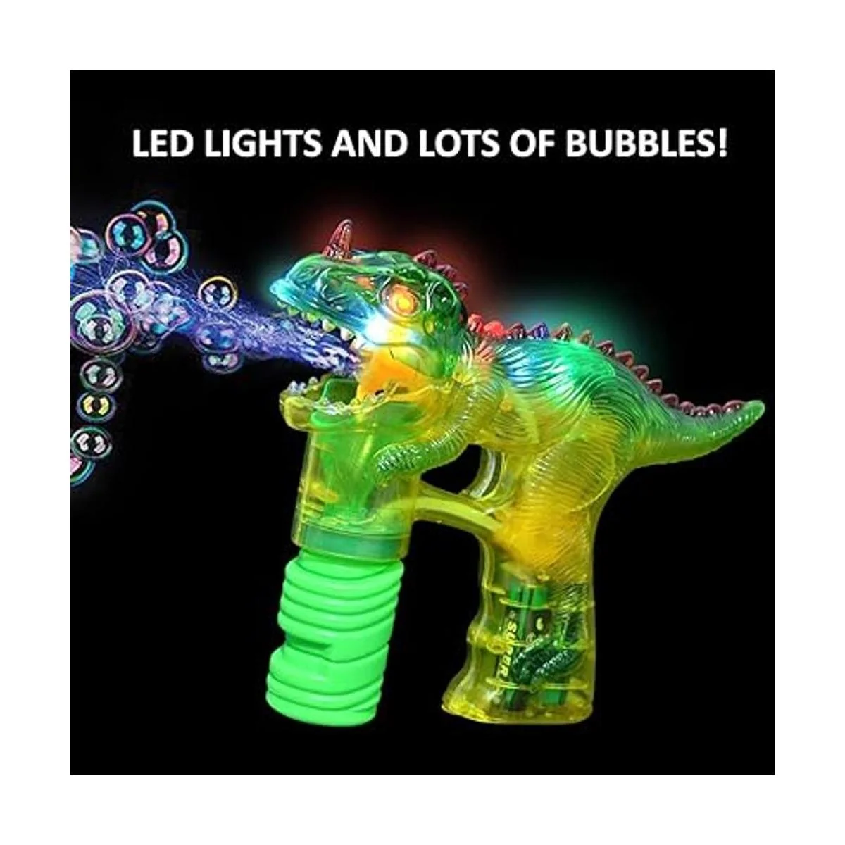 Haktoys Jurassic Burbujero con forma de dinosaurio, con luz Juguete Bubble Blaster para niños, fiestas LED intermitentes, botella de recarga adicional, sin sonido, pilas incluidas.