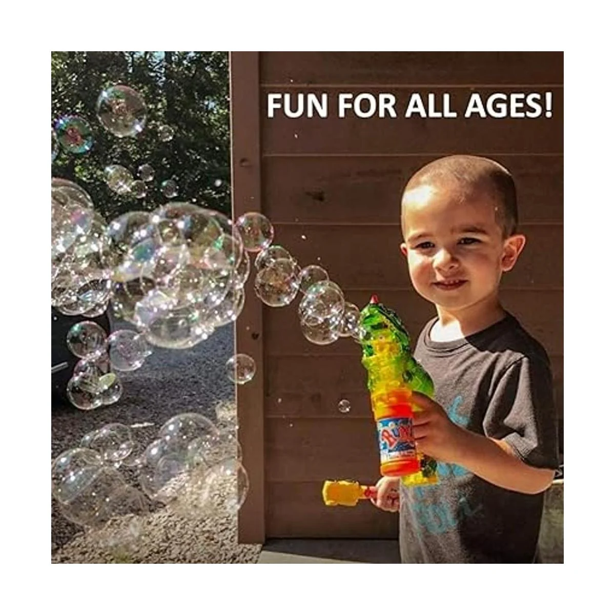Cuenta con luces LED brillantes y coloridas y un mango compacto, fácil de agarrar con solución de burbujas fácilmente acoplable. Viene con pilas de cortesía y un recambio de burbujas extra.