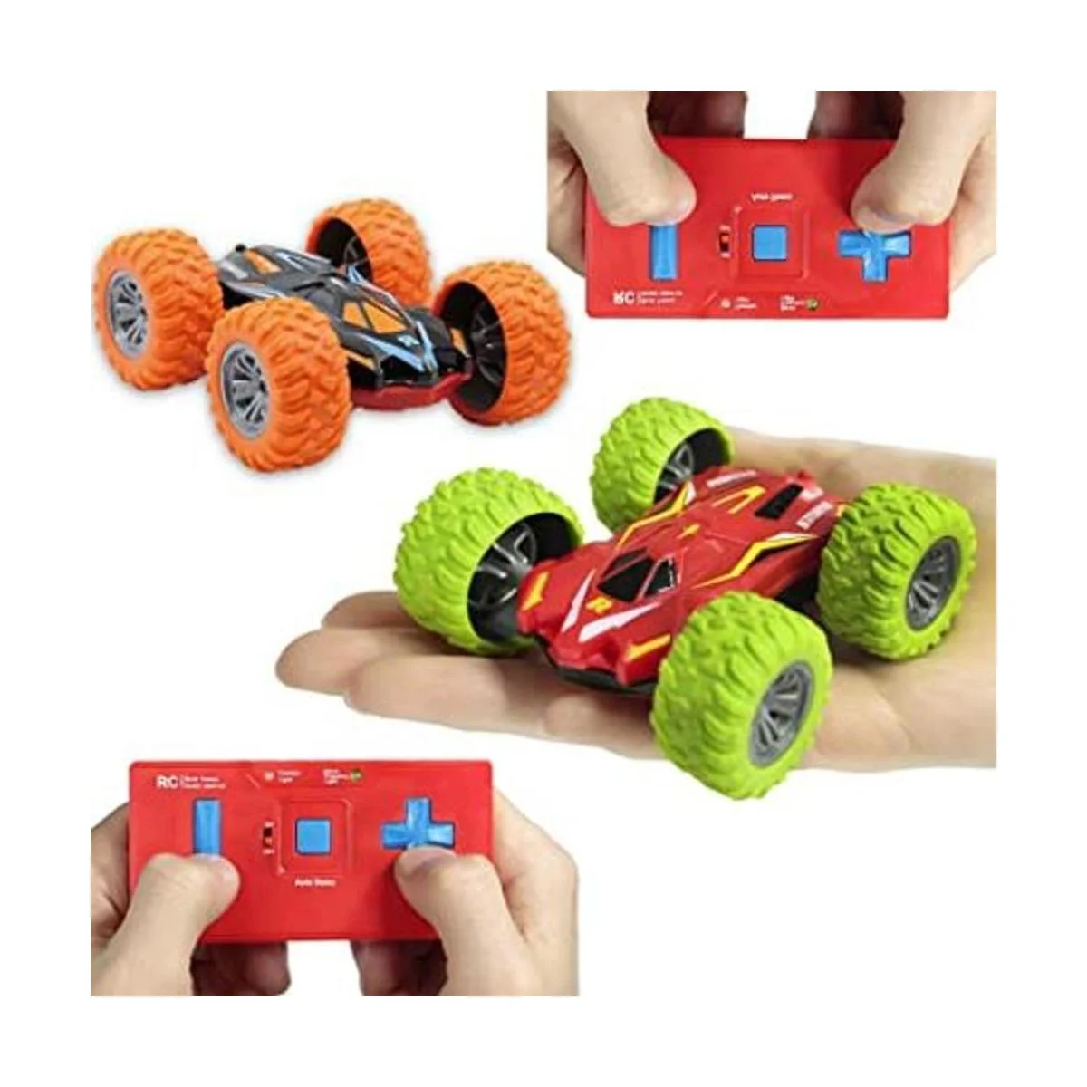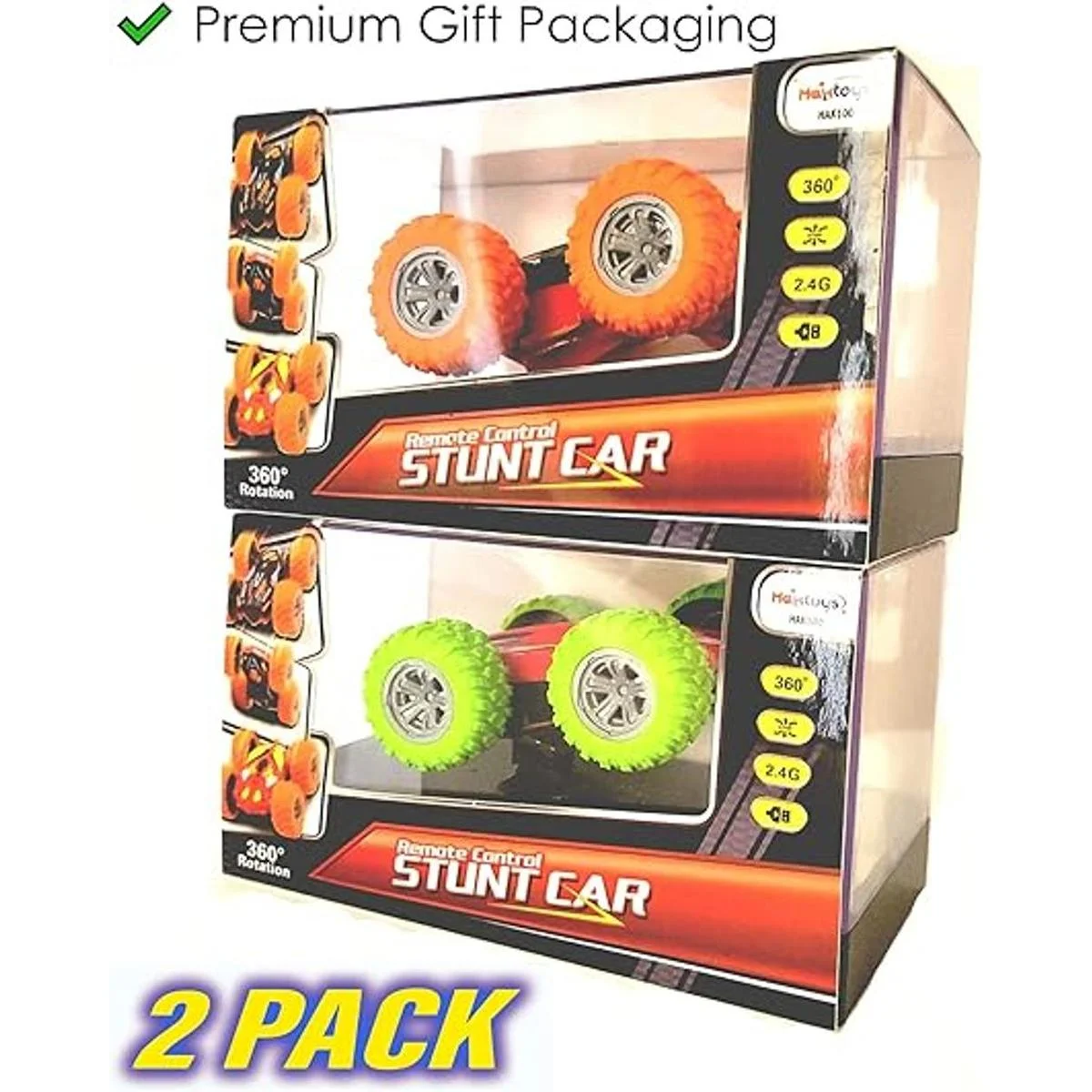 Haktoys Paquete de 2 mini coche de acrobacias con control remoto, control de 2.4 GHz para múltiples usuarios tecnología de juego simultáneo, control remoto de alta velocidad, rotación extrema y caída de doble cara AWD acrobático vehículo todoterreno