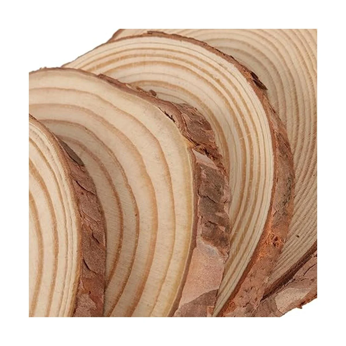 Aspecto rústico y superficie suave: viene con 100 bolas de madera con corteza, y cada disco de madera es de 7,1 a 3.2 in de diámetro y aproximadamente 0.5 in de grosor. La superficie está cuidadosamente pulida y lisa, y la corteza circundante está intacta, lo que refleja una apariencia rural natural y auténtica.