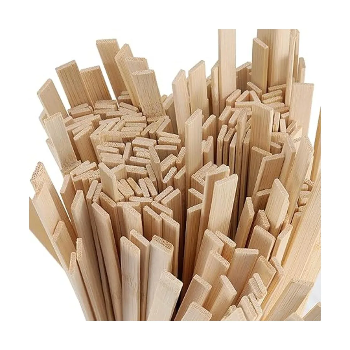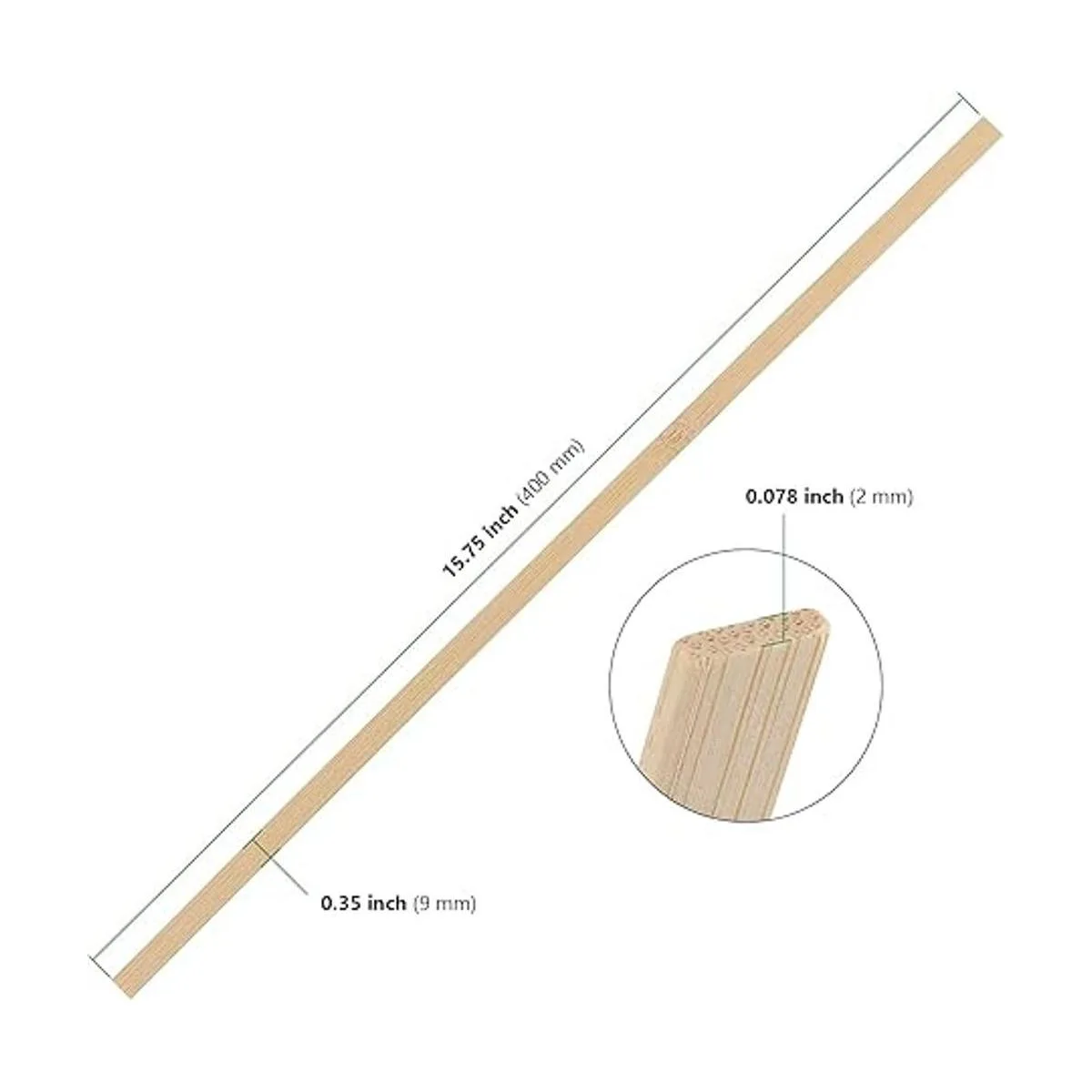 Varillas lisas y planas: cada una de estas varillas de bambú planas está pulida bajo una fina artesanía, tiene una superficie lisa y un corte limpio y plano en el extremo, que es fácil de cortar, taladrar, pintar y aplicar pegamento. Ideal para manualidades con tu familia o amigos.