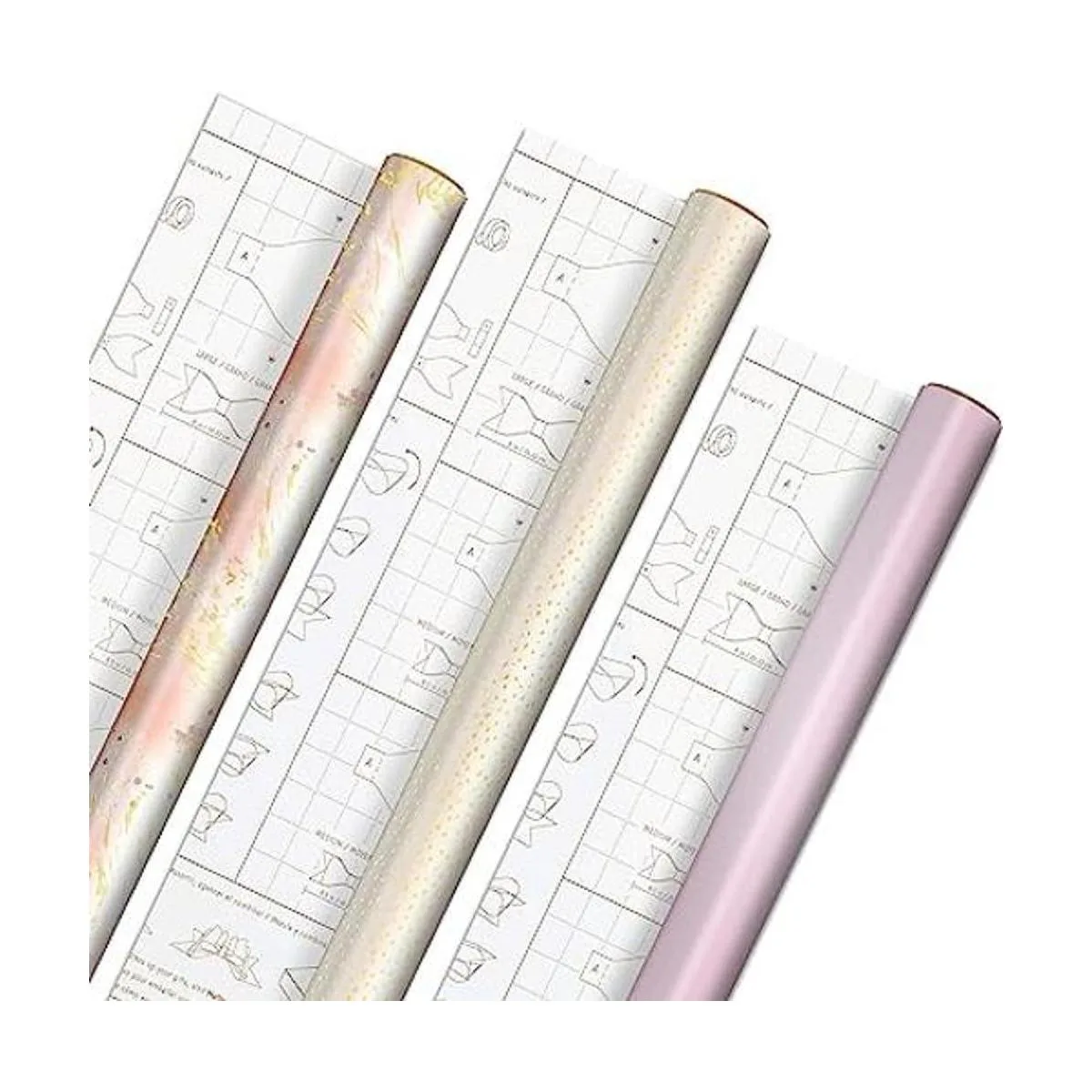 Hallmark Papel de regalo rosa y dorado con líneas de corte y plantillas opcionales de lazo en el reverso paquete de 3 75 pies cuadrados para Navidad, cumpleaños, bodas, despedidas de soltera, baby showers, manualidades