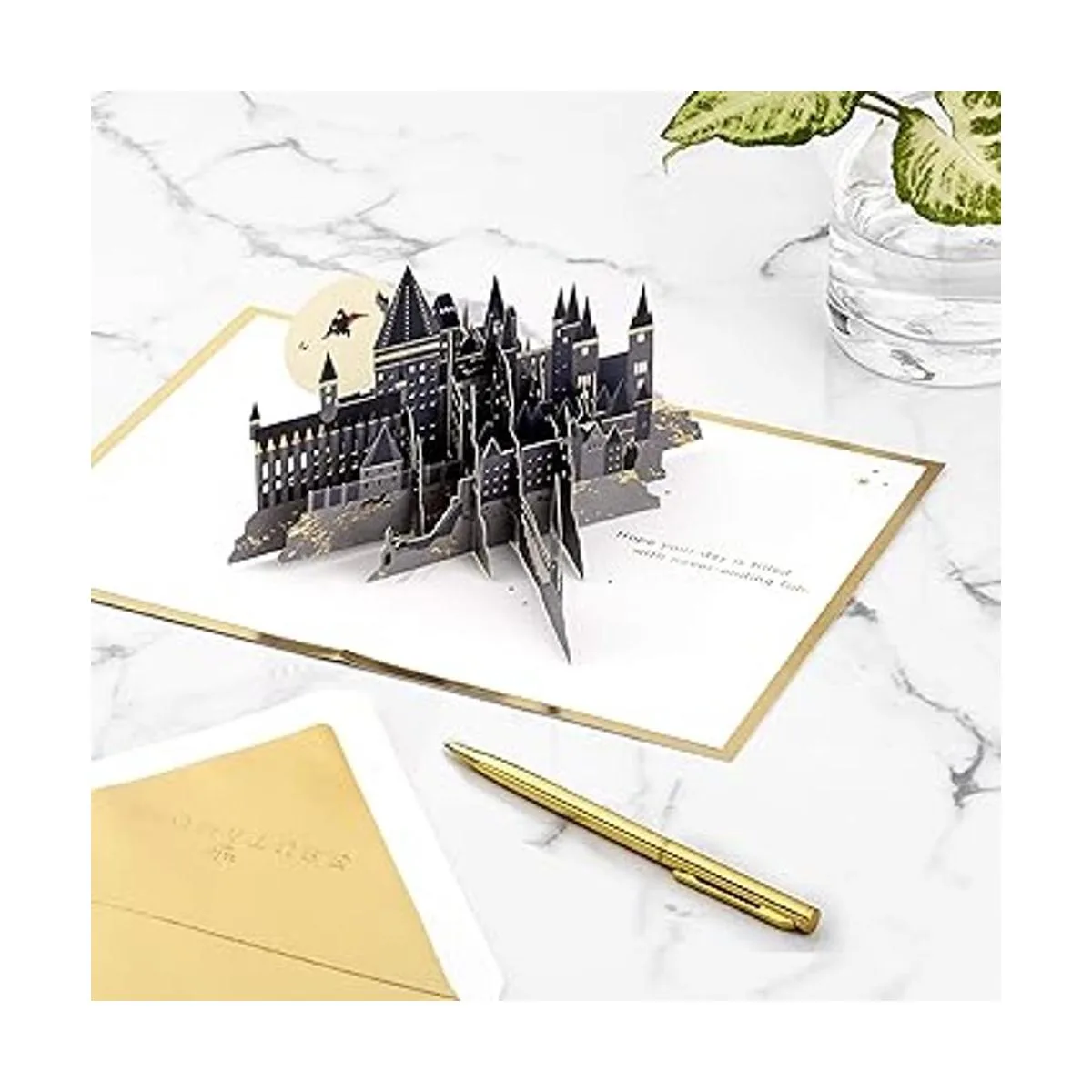 Desea a brujas, magos y muggles por igual un día muy feliz con una impresionante tarjeta desplegable 3D de Harry Potter que seguramente apreciarán.