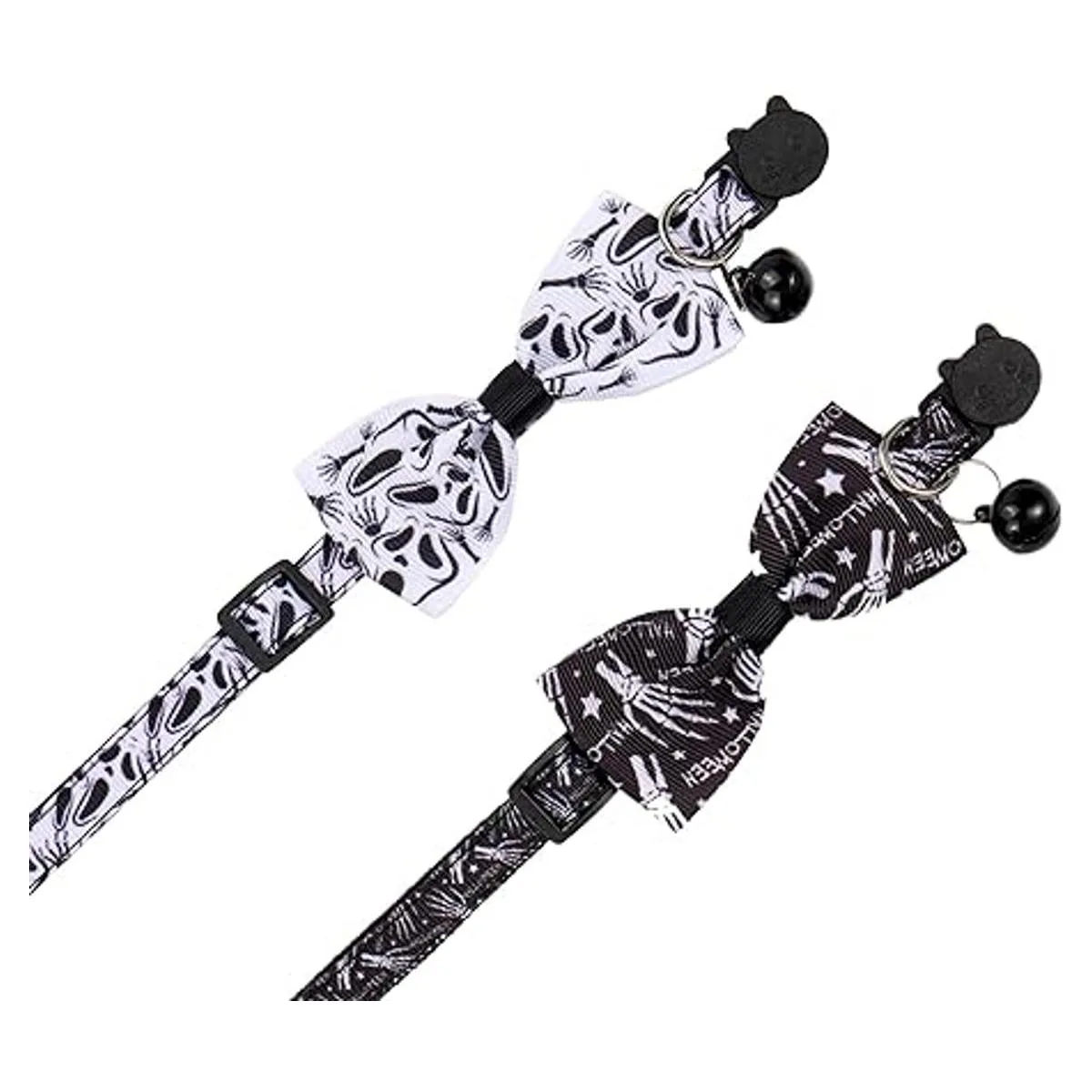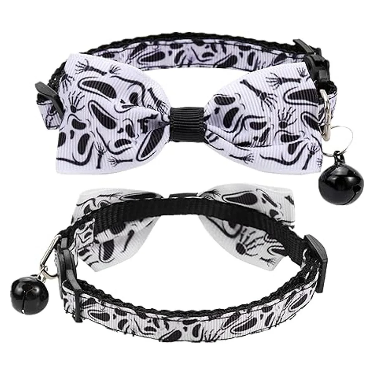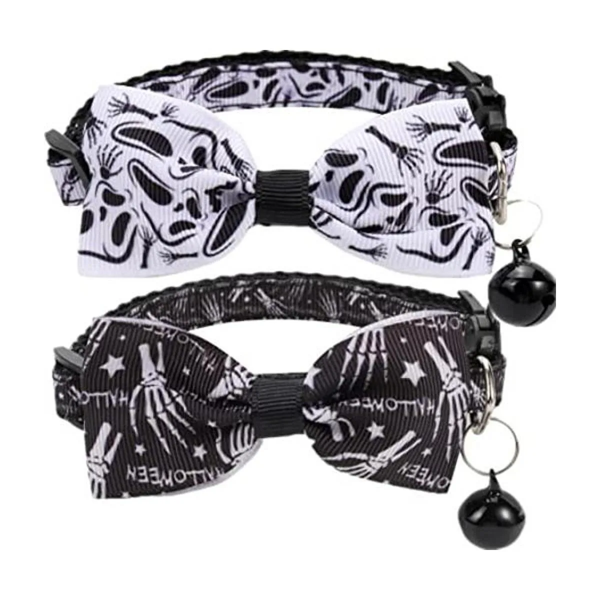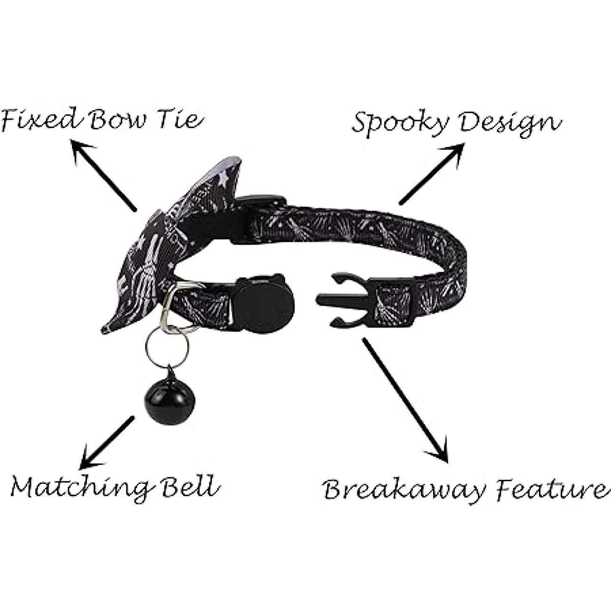Halloween Cat Collar Bowtie, Spooky Kitten Collar with Bell, Bow Tie Puppy Collar Breakaway