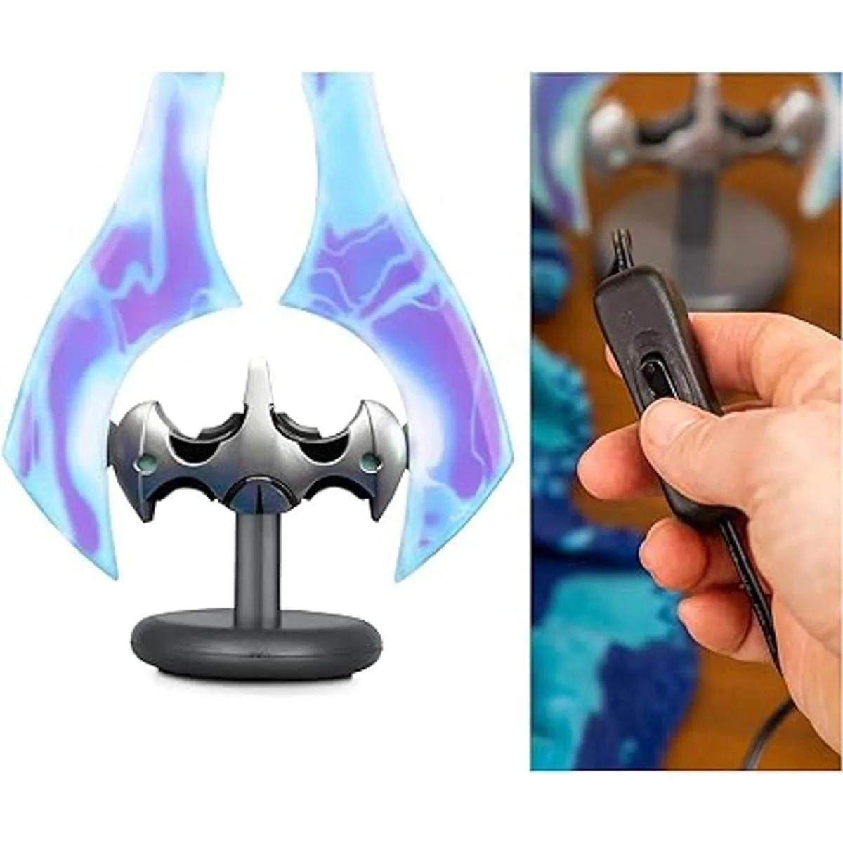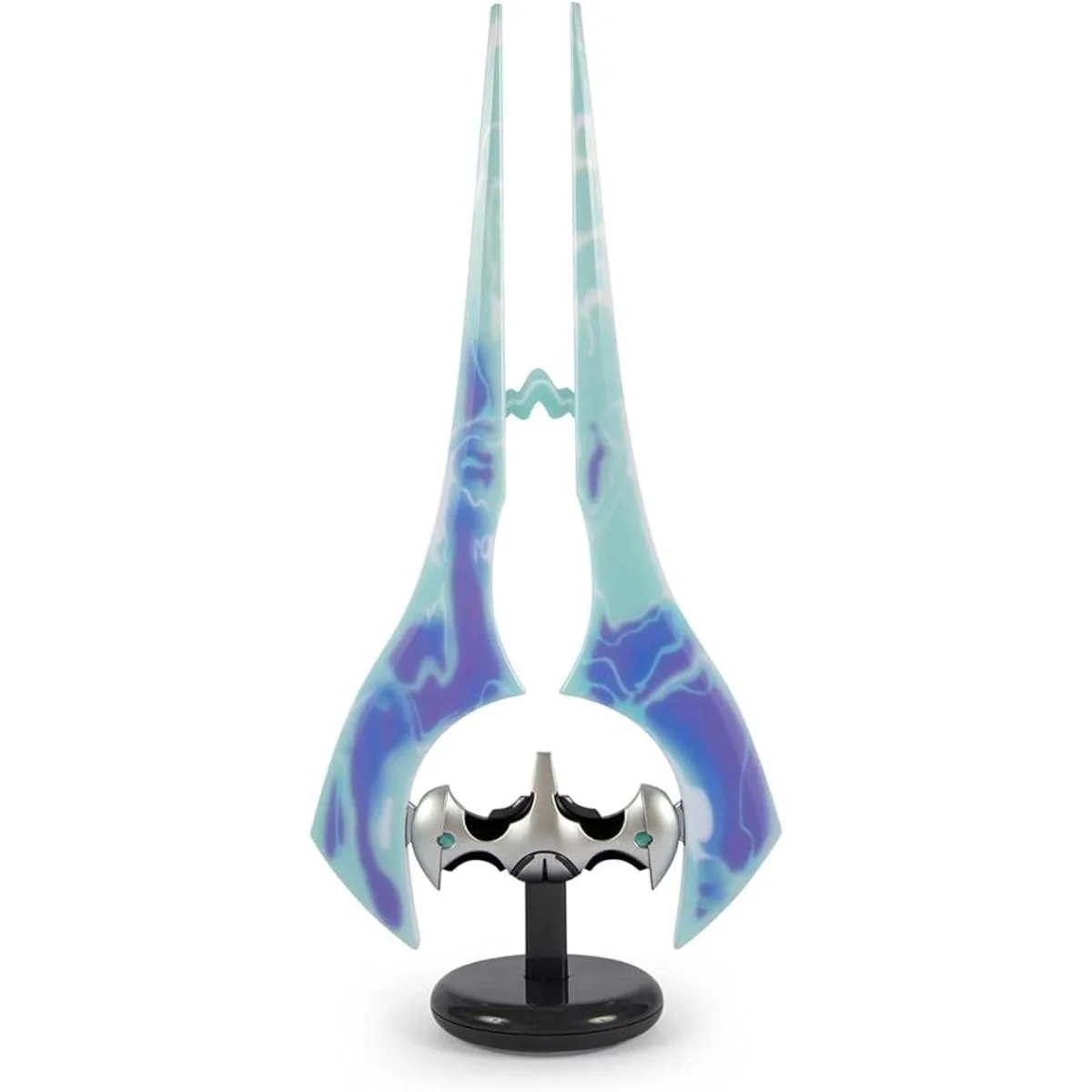 Dimensiones: esta luz de estado de ánimo Energy Sword a escala 1:3 mide aproximadamente 14 pulgadas de alto, incluyendo la base. Aunque este arma Sangheili de doble hoja no está hecha de plasma real, iluminará tu fortaleza.