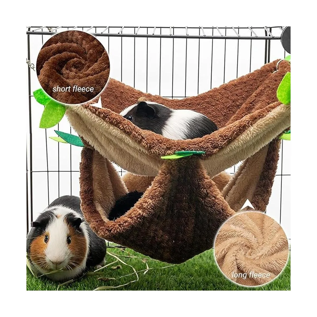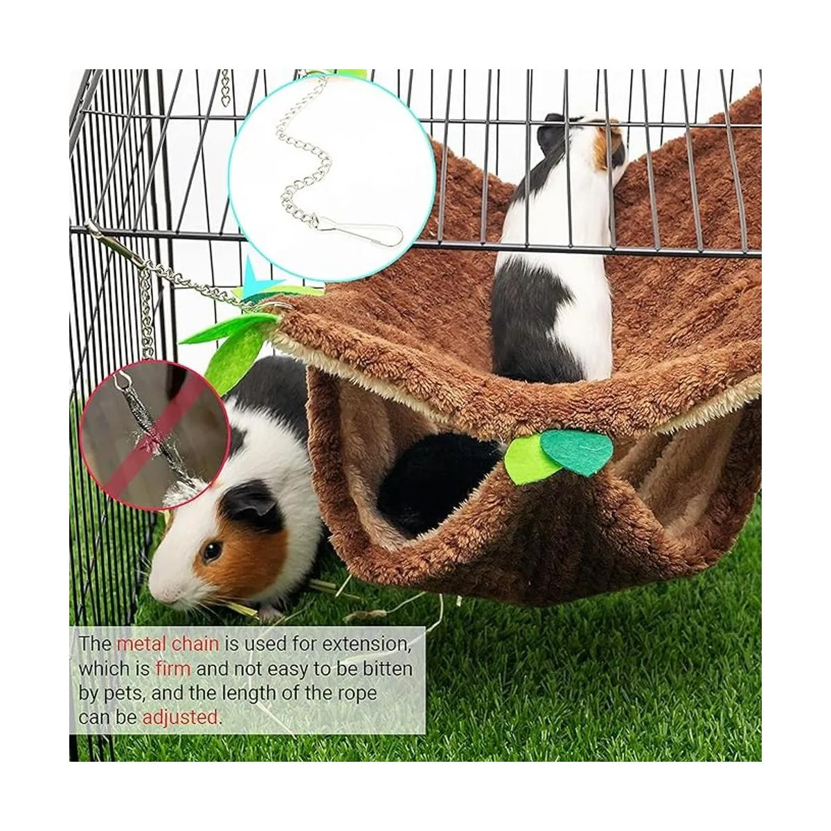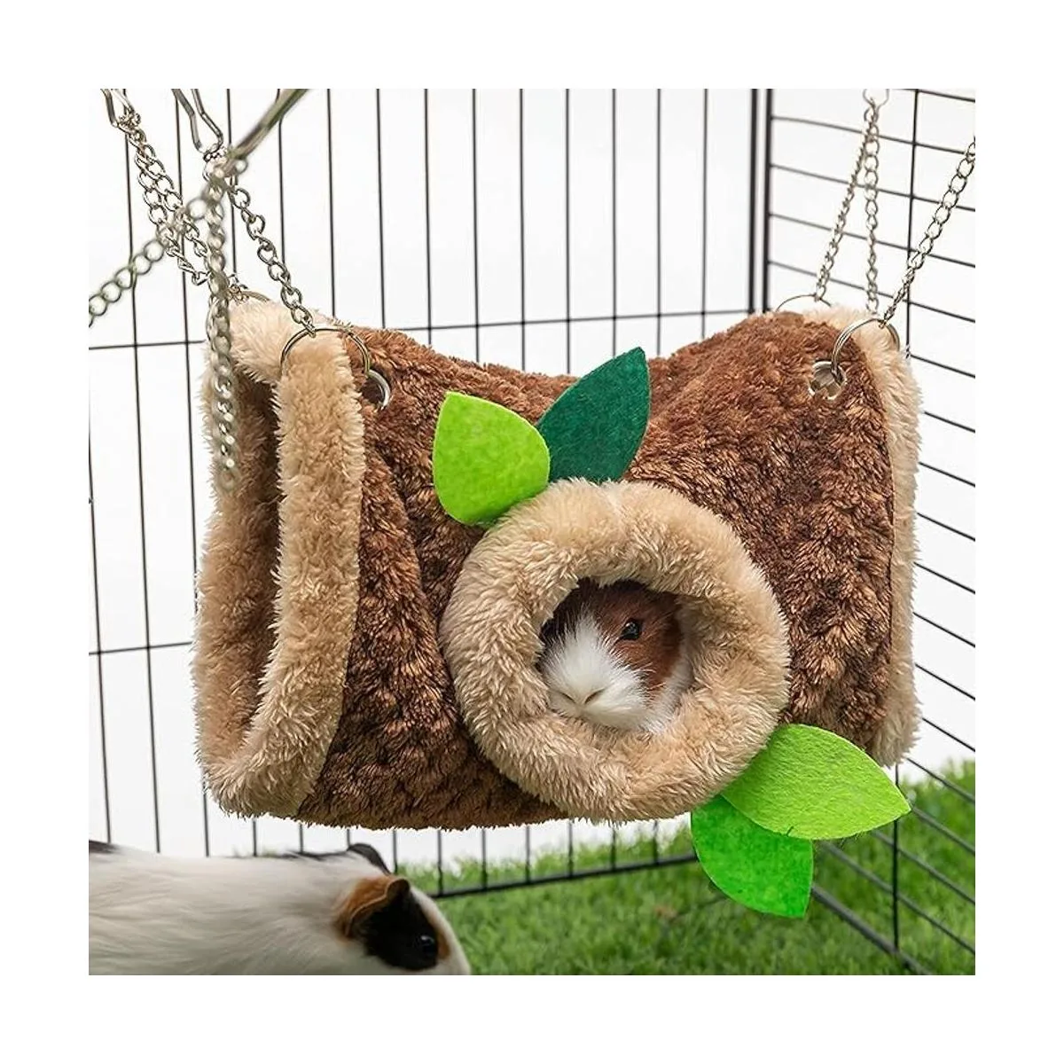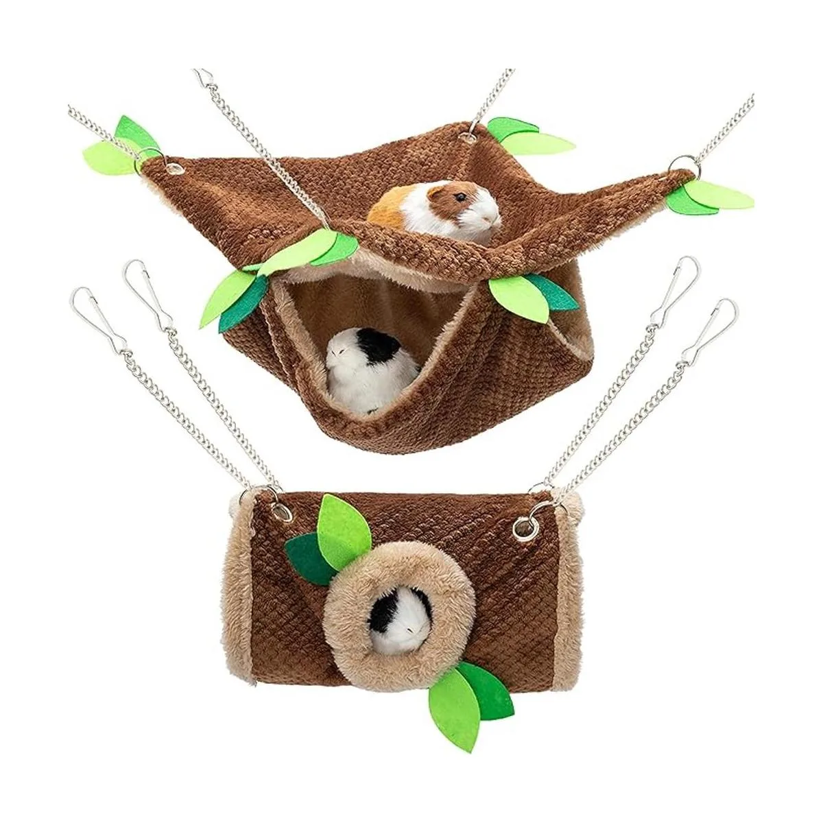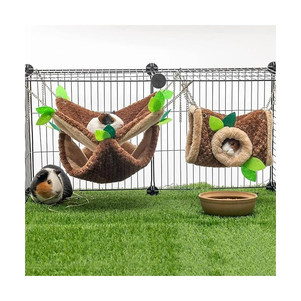 Hamaca de animales pequeños, hamaca colgante y túnel escondite para conejillo de indias, hámster, loro, rata, chinchilla, cálida, jaula de felpa, lavable, para mascotas