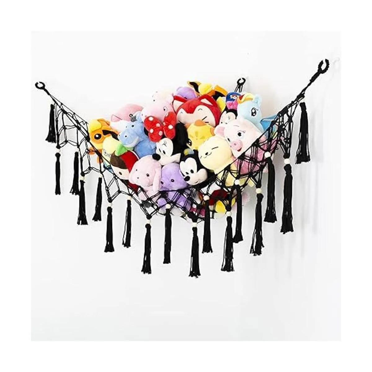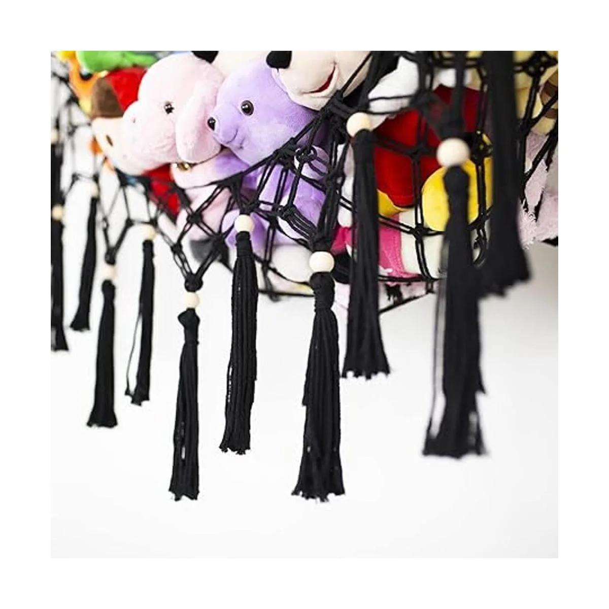 Hamaca grande de juguete de red de peluche con borla, red colgante para soporte de juguete de peluche, exhibición de juguetes de macramé, organizador de almacenamiento de juguetes para habitación de niños, guardería, dormitorio