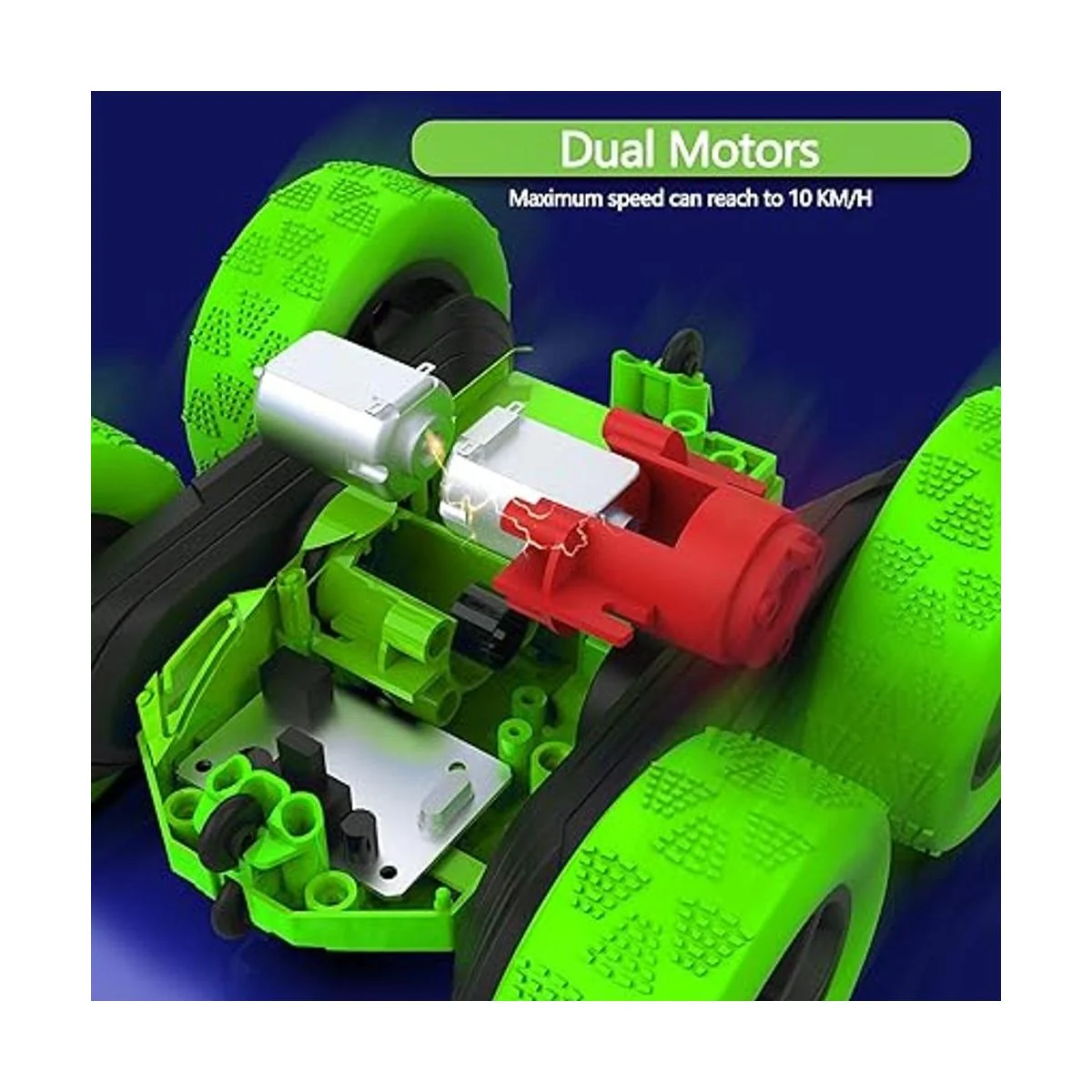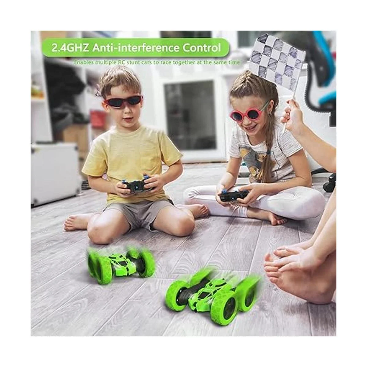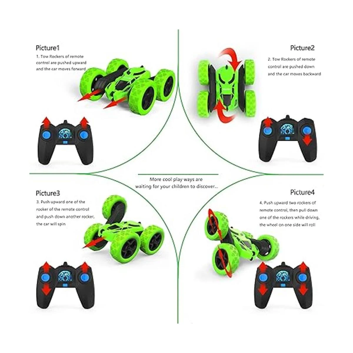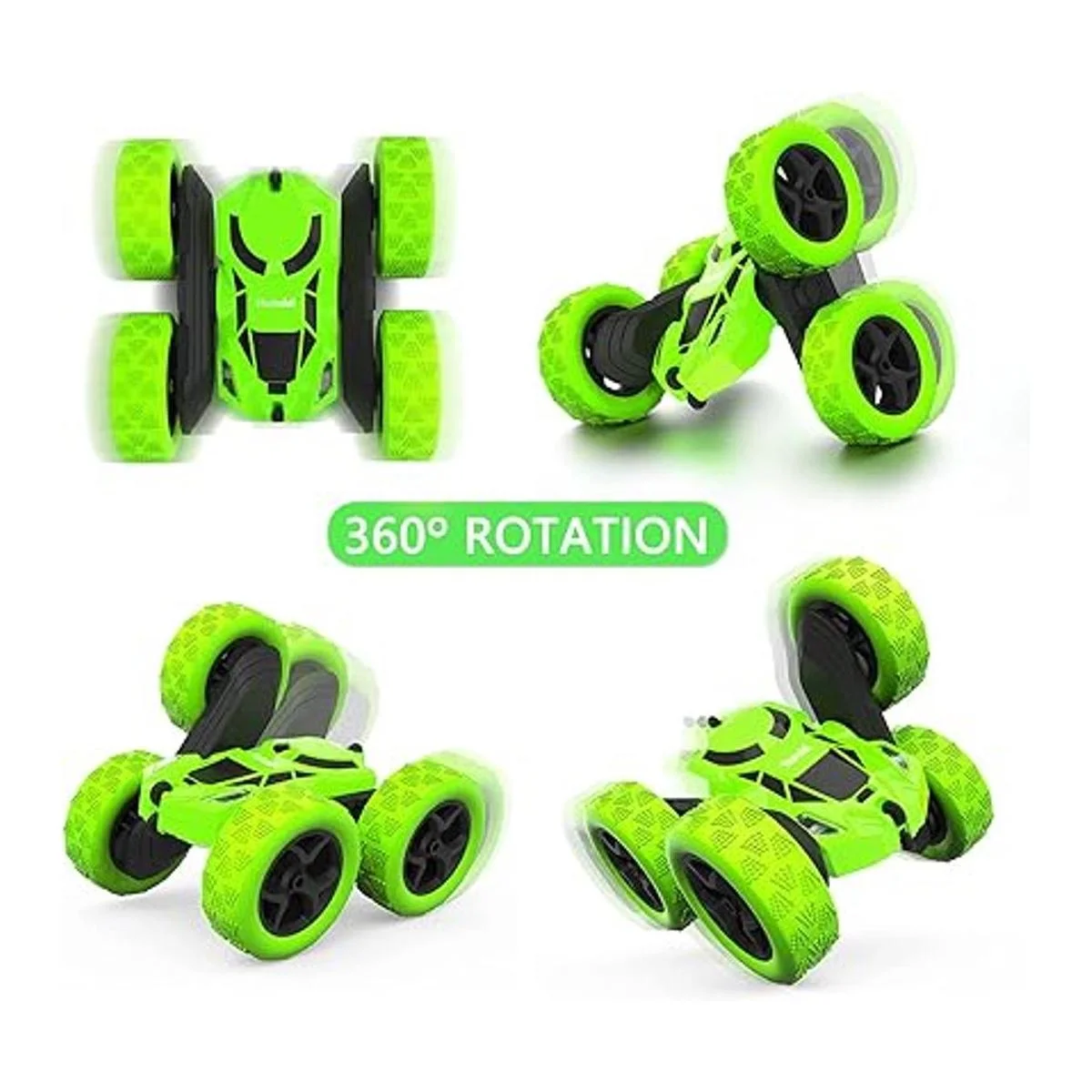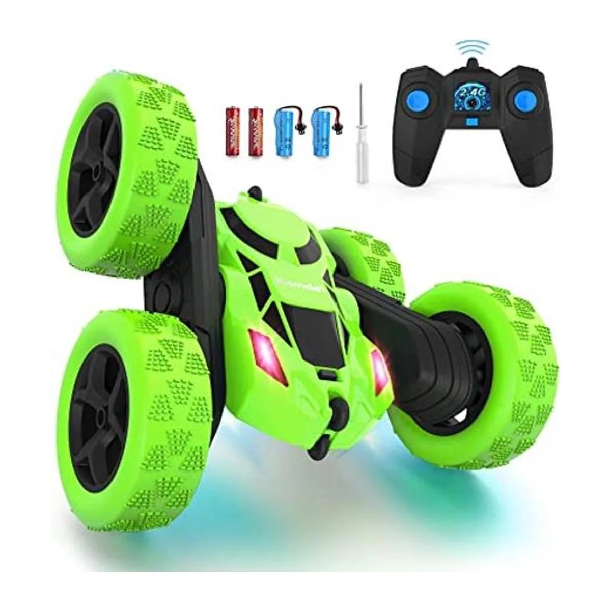 Hamdol Automóvil de control remoto, de doble cara, giratorio de 360, 4WD RC con faros delanteros eléctricos de 2.4 GHz, auto de juguete recargable para niños y niñas, cumpleaños verde