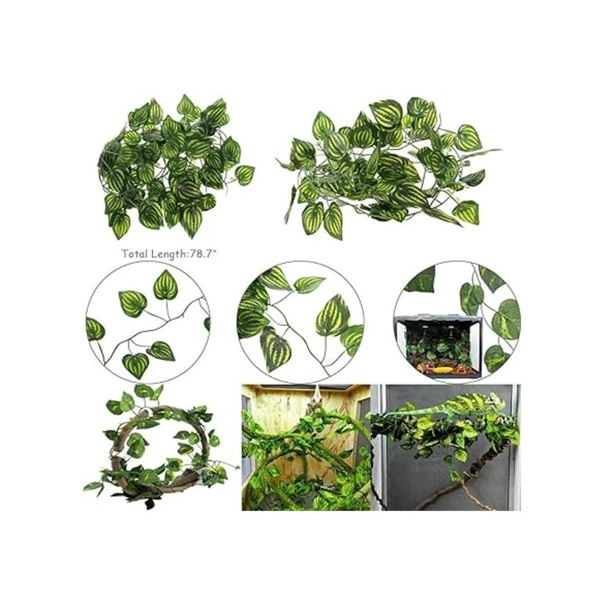 Vid de jungla flexible: vid de ratán flexible artificial con sensación y apariencia natural; las viñas de reptiles de la jungla son resistentes al agua, dan a tu mascota una mejor experiencia. Las hojas artificiales están laminadas de polipropileno, con aspecto realista y no se decoloran ni se decoloran fácilmente; proporcionan un hábitat maravilloso y cómodo, diseños simples y formas variadas, hacen que tu bajista se sienta como en casa.