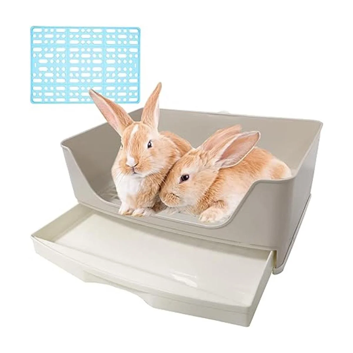 Diseño de bandeja deslizante: la caja de arena grande para conejo adulto es fácil de limpiar y mantener, la malla inferior es del tamaño correcto, las heces y la orina de mascotas pueden caer fácilmente en la caja, y mantener los pies de tu mascota limpios. Para limpiar, simplemente retira el cajón, saca la basura, coloca la alfombrilla y vuelve a colocarla. No hay necesidad de desbloquear toda la caja de arena cada vez que limpias.