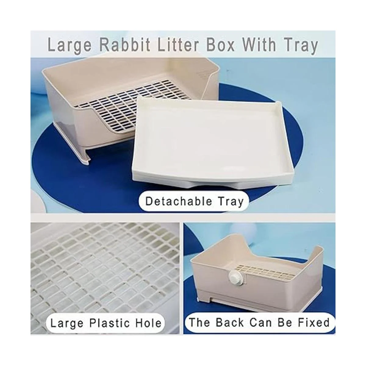 Hamiledyi Caja de arena grande para conejos, inodoro de esquina con cajón, bandeja para mascotas más grande para conejillos de indias adultos, hurón, chinchilla, galesaurio, animales pequeños
