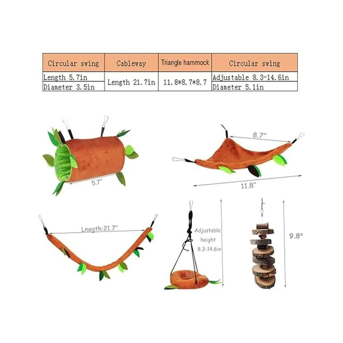 Hamiledyi Hamster Hamaca de animales pequeños colgando de casa cálida para cama de madera de manzana natural orgánica, palo de masticar jaula de rata, accesorios de nido de juguete, túnel colgante y columpio para planeador de azúcar ardilla