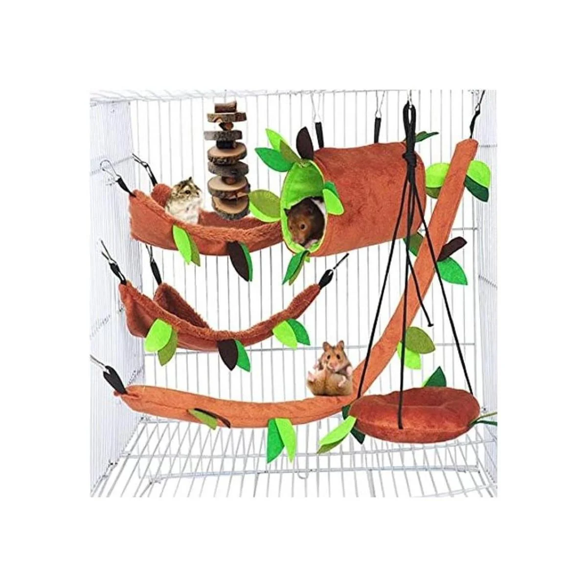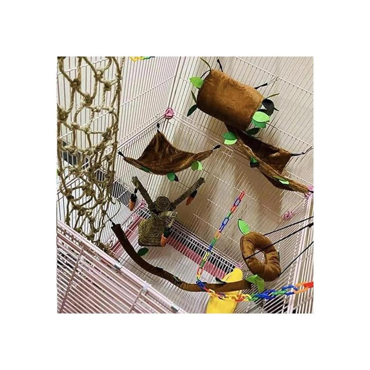 Traje de selva: Quieres que tu mascota juegue felizmente en la jungla El juego creativo de selva incluye un túnel de tocón, un cable largo, dos hamacas triangulares y una hamaca redonda para enriquecer la decoración de tu casa de mascotas. Aspecto súper lindo de la selva, brillante y enérgico, a tu mascota le gustará.