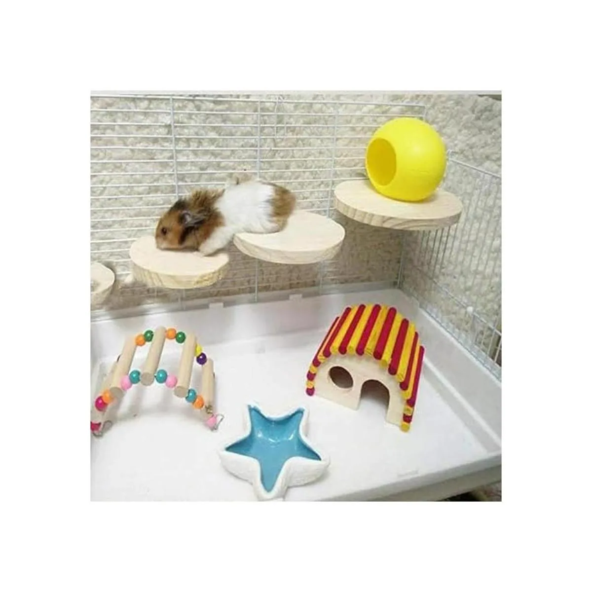 Material 100 natural: la plataforma de hámster está hecha de madera de pino natural. La superficie del juguete de animales pequeños está pulida, protege el medio ambiente, es duradera y fácil de limpiar. No es tóxica y es completamente segura para masticar.