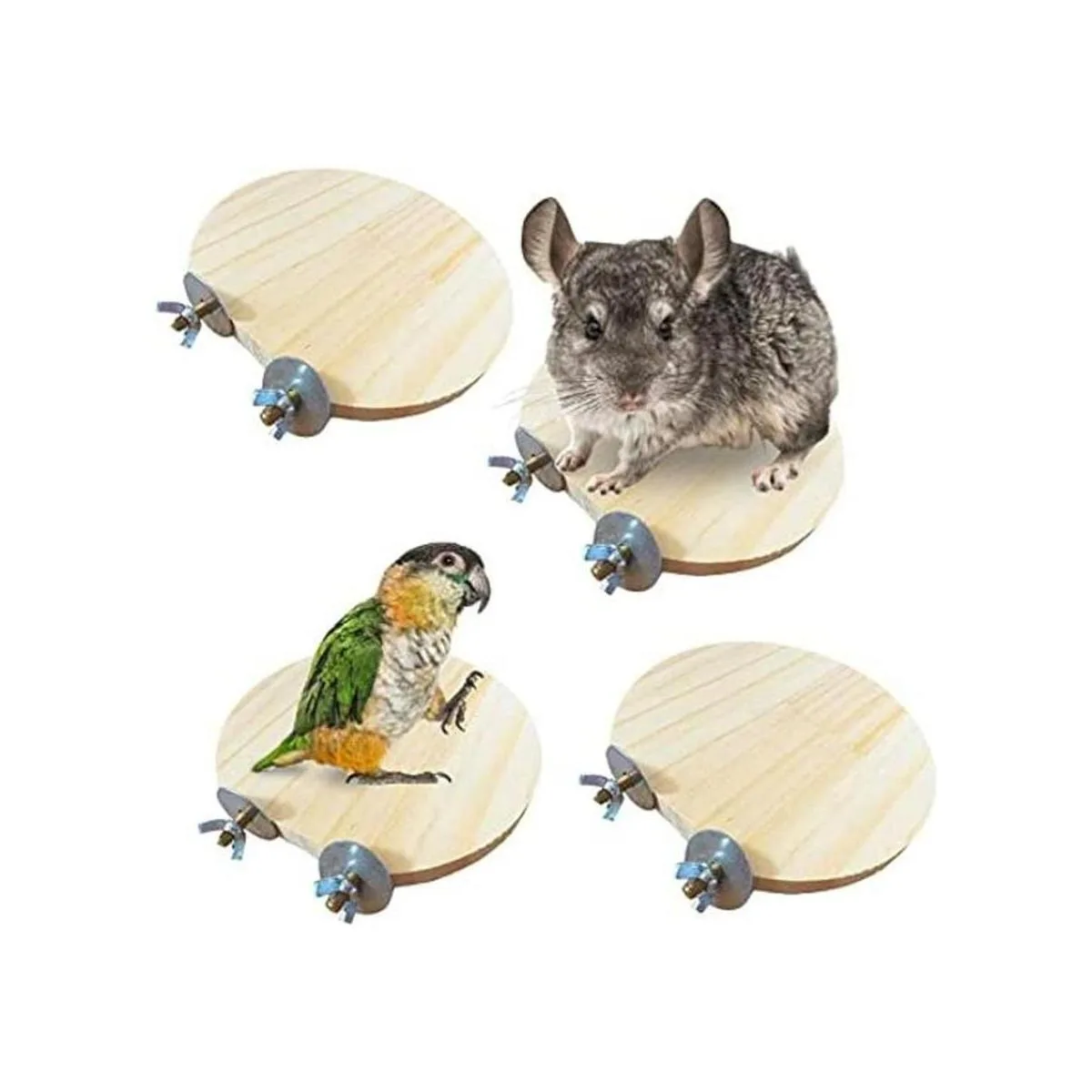 Hamiledyi Soporte para hámster de madera natural para ratas y parque de recreo, accesorios con arandelas de acero inoxidable para pájaro, loro, ratón, gerbio y enano