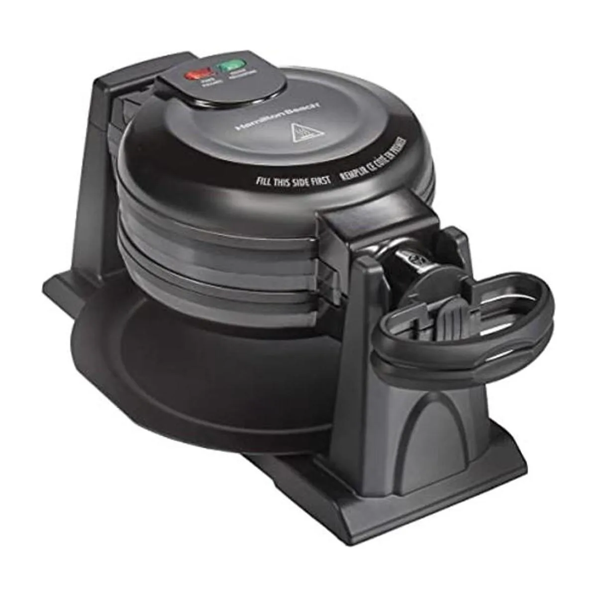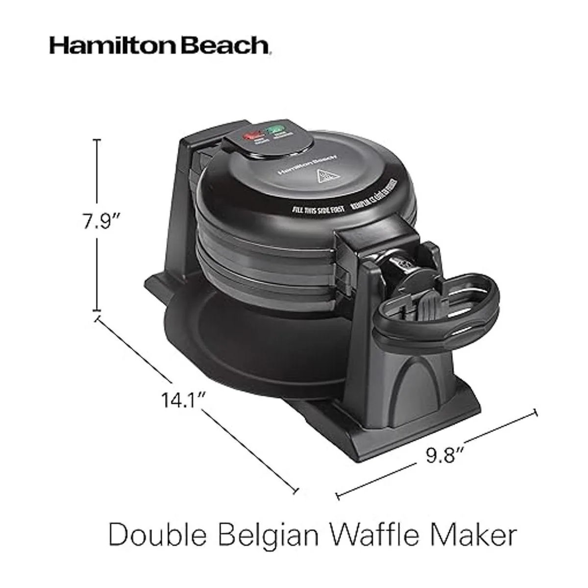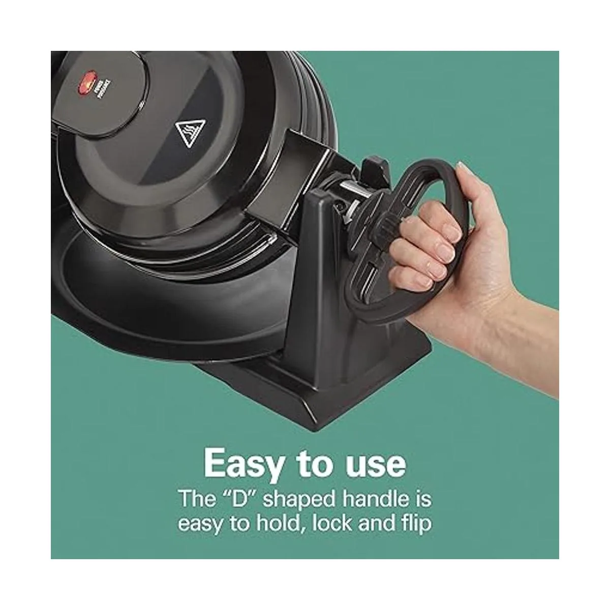 Hamilton Beach 26201 Waflera belga con placas antiadherentes extraíbles de doble vuelta, color negro