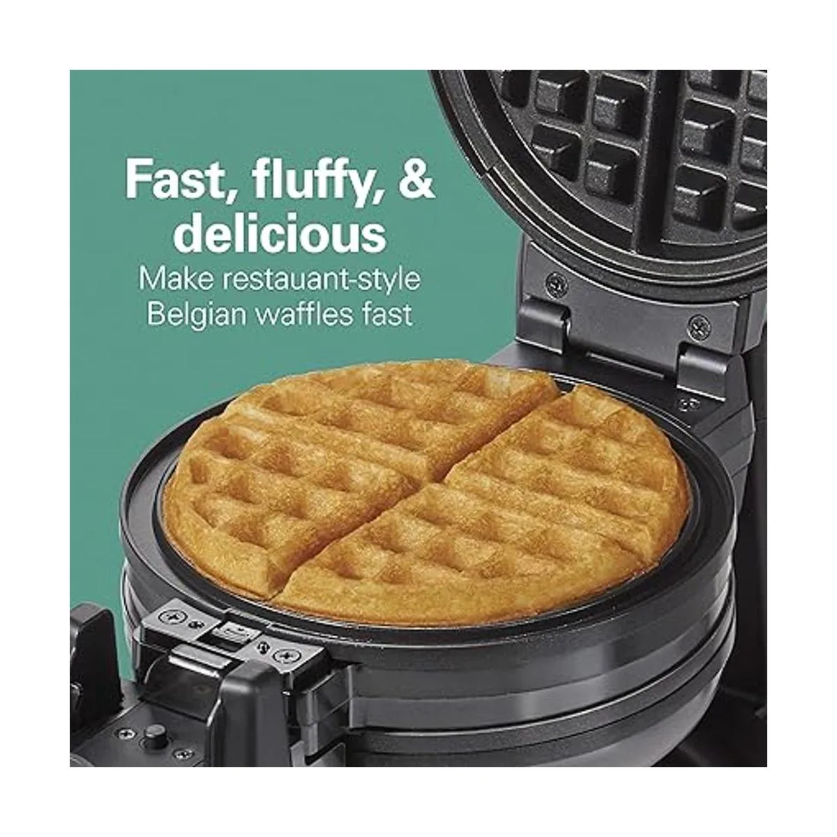 Haz wafles belgas esponjosos y dorados, de estilo restaurante rápidamente: Esta waflera belga que gira es redonda de 7 pulgadas. Wafles belgas esponjosos de 92 pulgadas, que son crujientes en el exterior y perfectamente cocinados en el interior, rápidamente, como un chef de restaurante.
