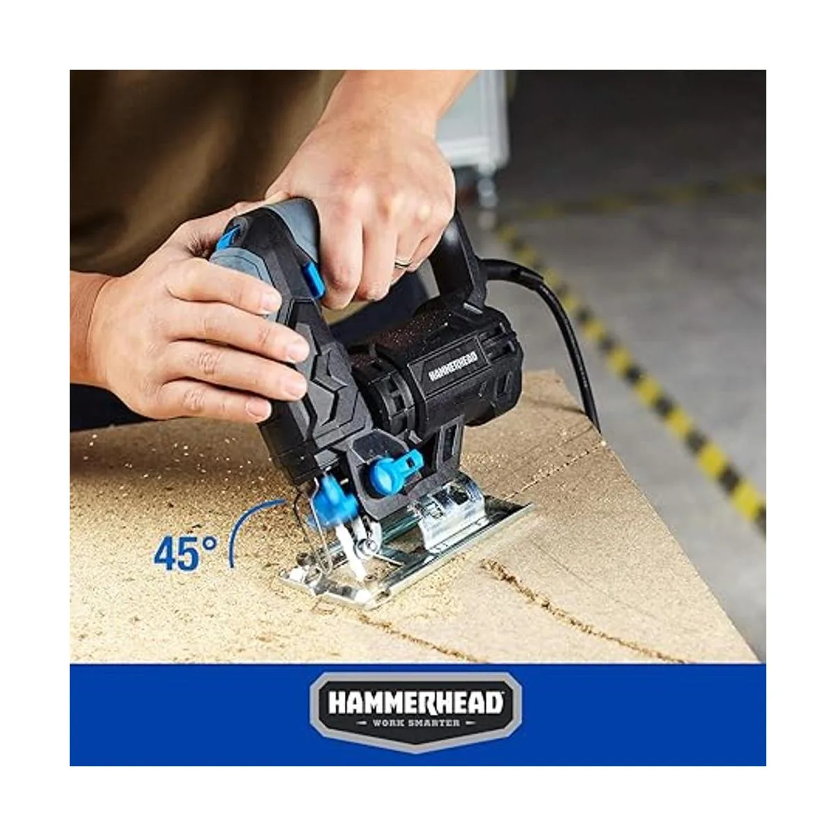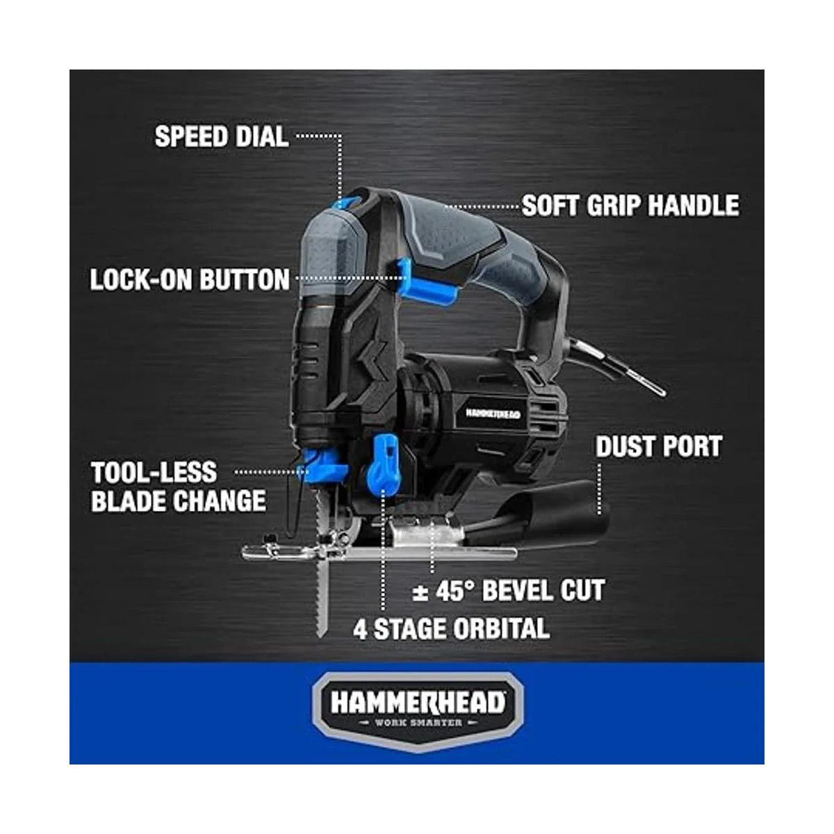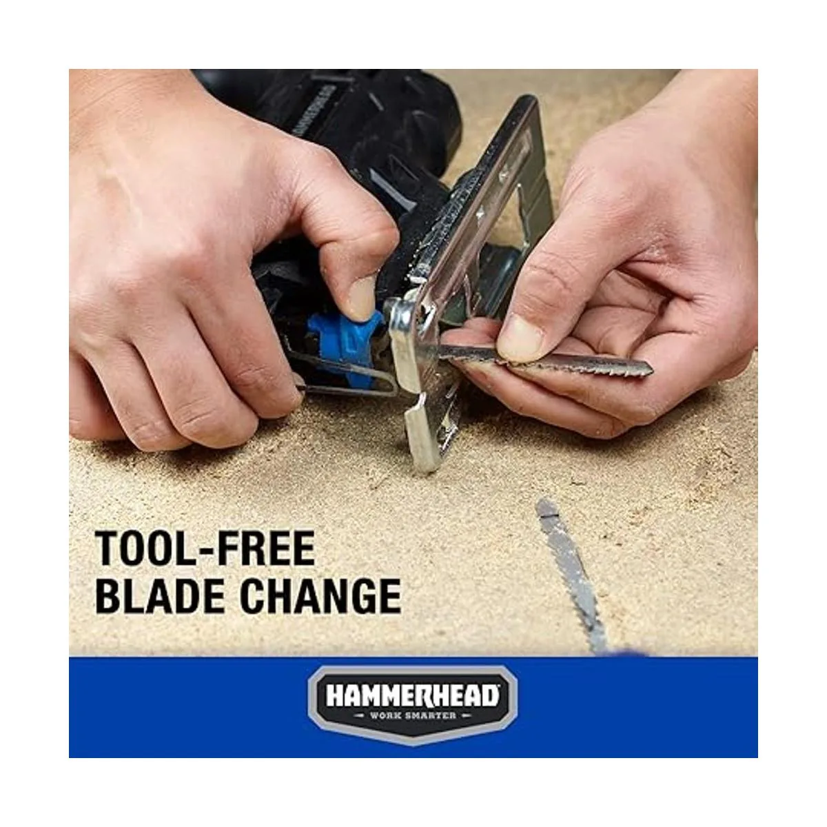 Hammerhead Sierra de calar de 4.8 amperios de 34 pulgadas con 2 cuchillas de corte de madera, velocidad variable y función orbital, HAJS048