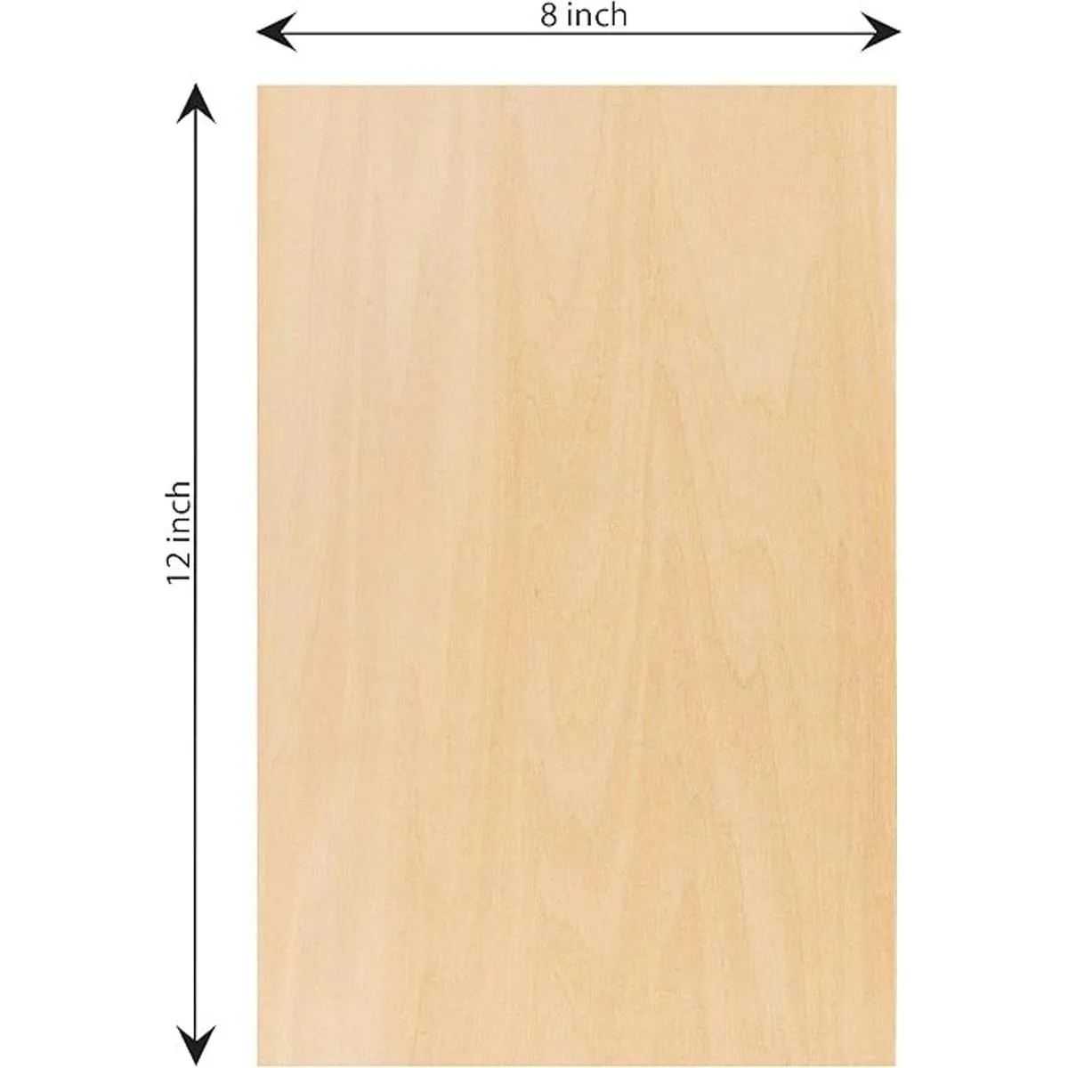 Hammont Hojas de tilo de 12 x 8 x 116 pulgadas paquete de 8 Hojas finas de madera contrachapada para manualidades, tableros de madera y proyectos escolares