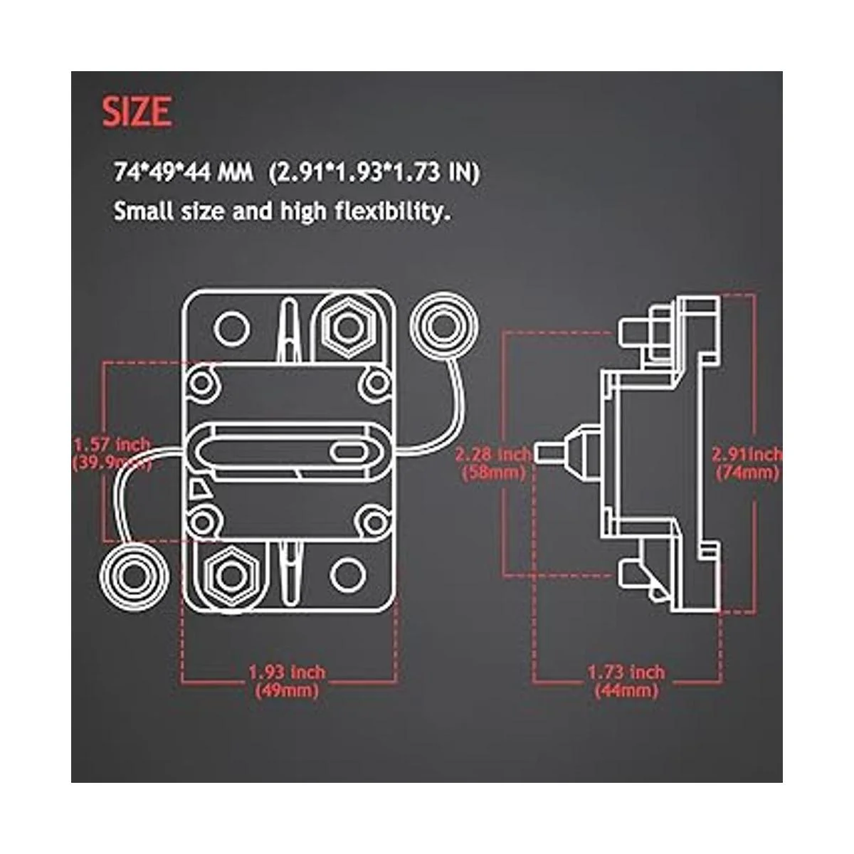 Aplicación: adecuado para sistema de audio/video de coche, barco, camiones, autobuses, caravanas, cabrestantes ATV, protección de sobrecarga del sistema de amplificador de sonido marino y CC.