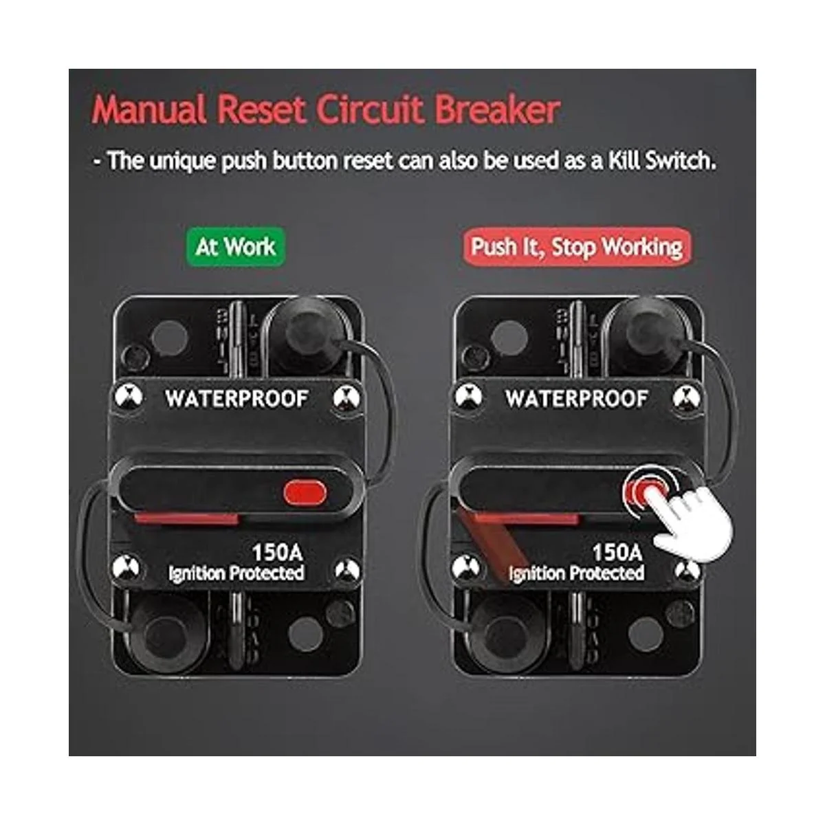 Hamolar Paquete de 3 unidades de audio para automóvil, 150 amperios, fusibles reiniciables, disyuntor de automóvil para sistema de audio, fusibles de 1248 V CC para amplificadores de audio de automóvil, fusibles de protección contra sobrecarga