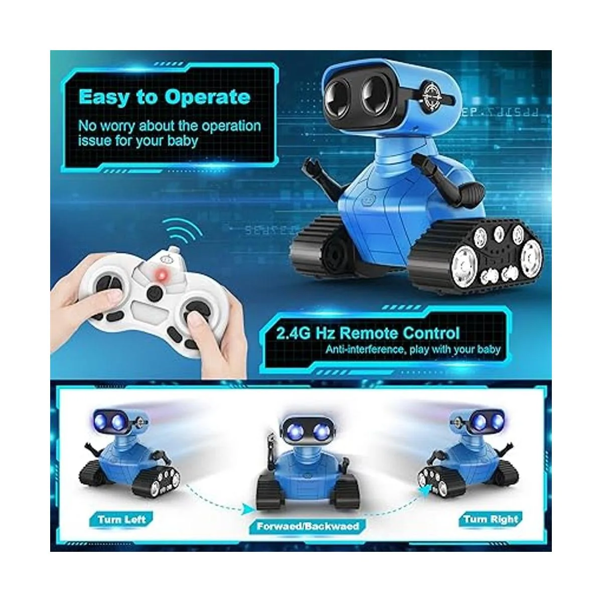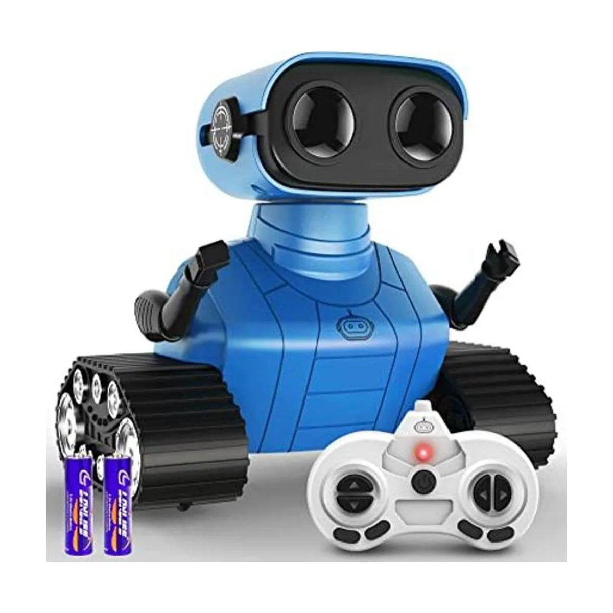 Robot multifuncional: los ojos LED se pueden iluminar una vez que enciendas el robot, también puedes hacerlo parpadear o cerrar por el controlador. Voz inteligente: enciende el robot que comenzará a hablar, también puede cantar diferentes canciones que se pueden cambiar por control remoto; la pista del tanque permite que el robot se mueva hacia adelante hacia la izquierda y la derecha de forma flexible. En modo de demostración, comenzará giros de 360 grados, bailando con brazos y cabezas flexibles.