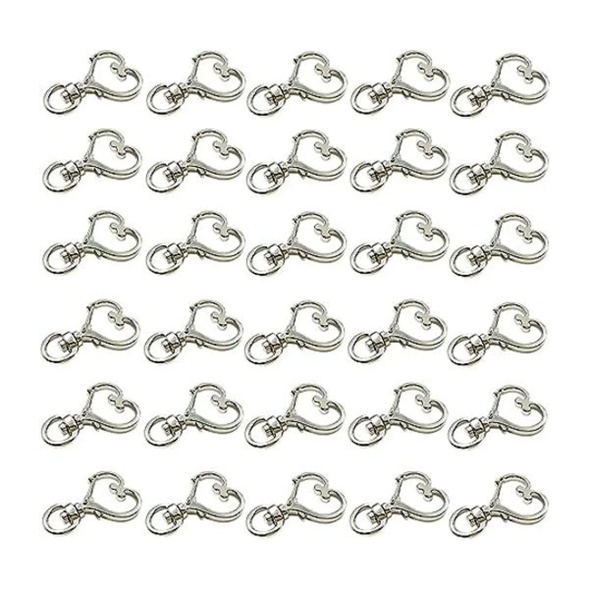 HAN SHENG 50 piezas de metal con diseño de corazón de resorte, clip creativo con hebilla colgante para llaveros, accesorios plata