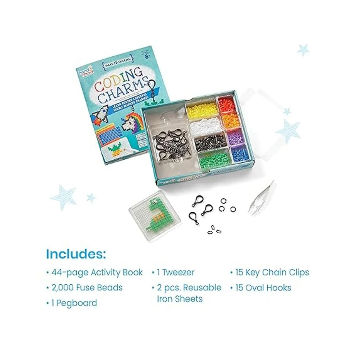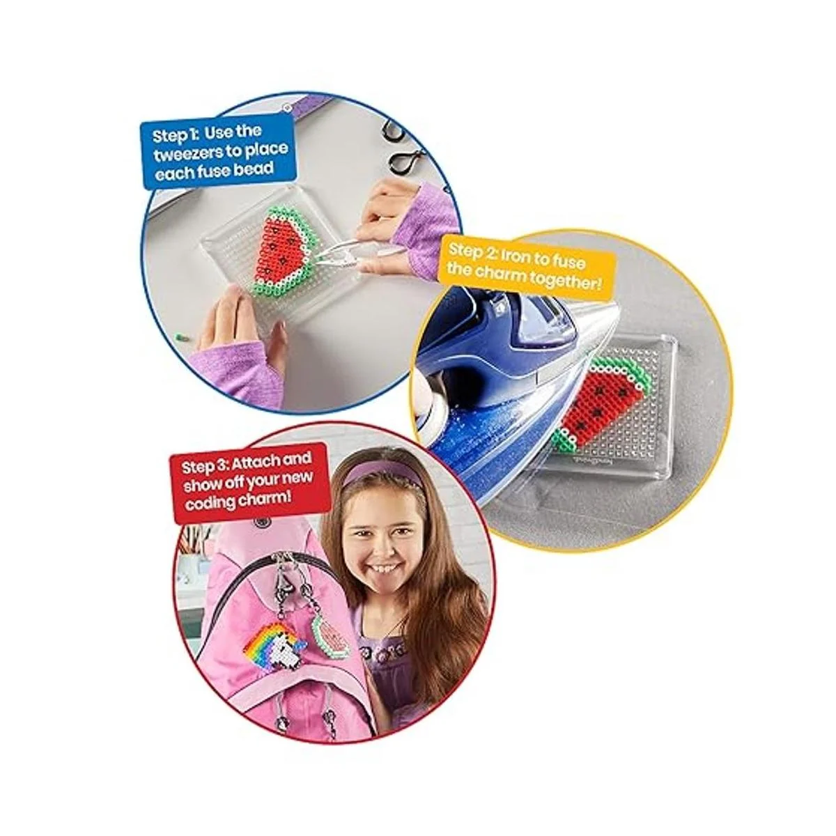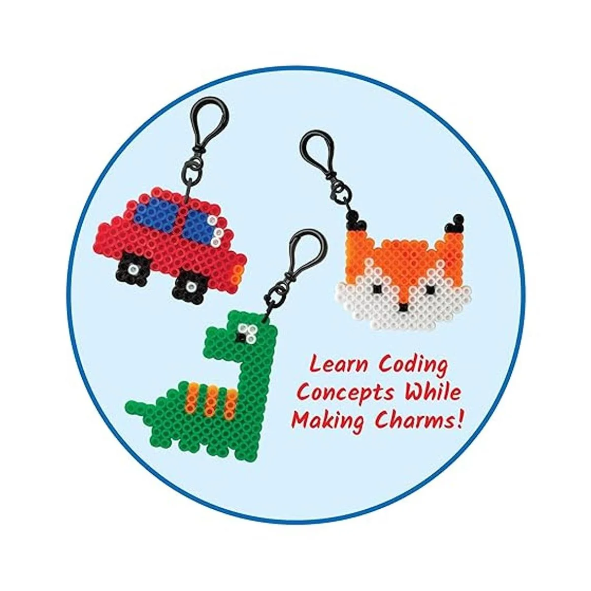 Llaveros de cuentas de fusible de código binario: los niños pueden elegir entre 18 diseños y codificar 15 llaveros utilizando las cuentas de fusible. Obtienen exposición a temas de codificación avanzada mientras se divierten y hacen 10 adorables dijes de llavero.