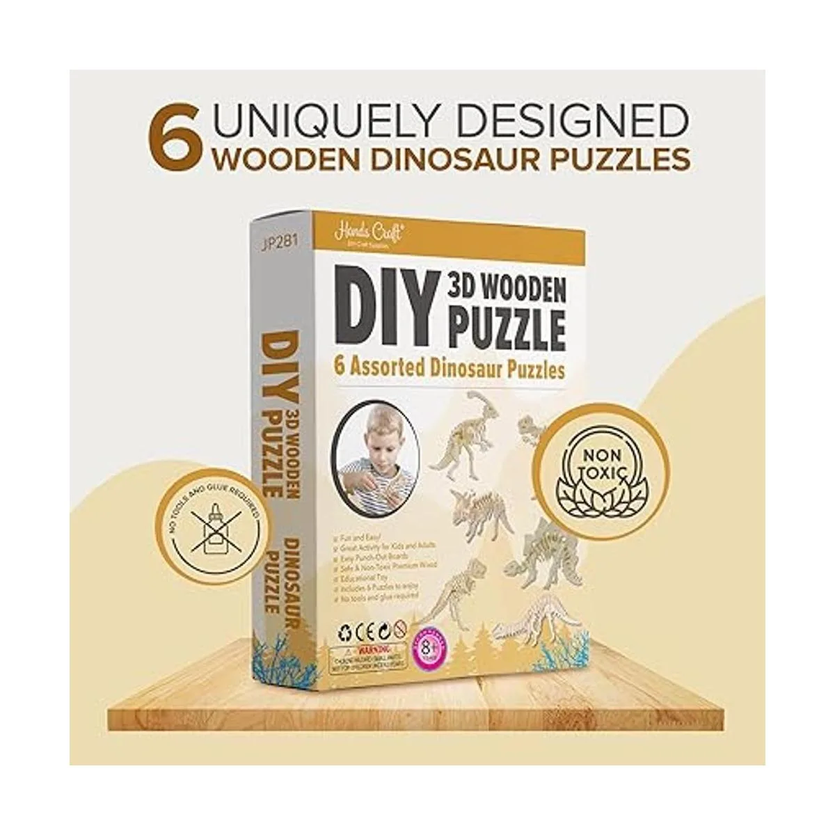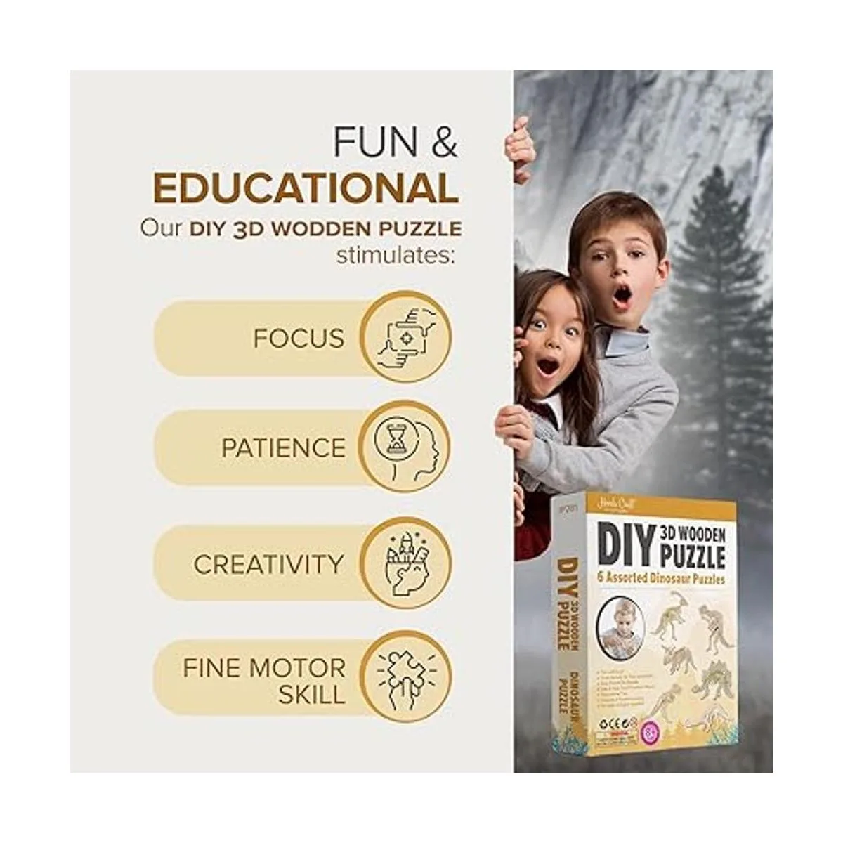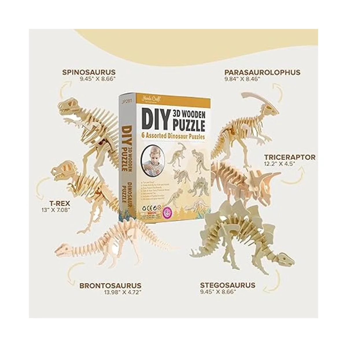 Juego de 6 piezas de rompecabezas: este paquete incluye: TRex, Brontosaurus, Spinosaurus, Triceratops, Stegosaurus y Parasaurolophus. No se requieren herramientas ni pegamento para construir tus propios rompecabezas de dinosaurio.