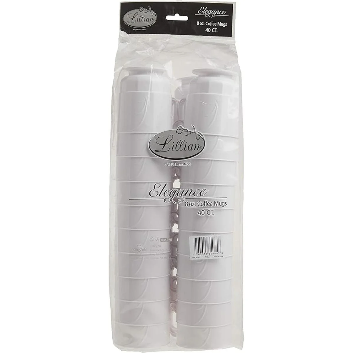Hanna K. Signature Collection 40 unidades de tazas elegantes de plástico, 8 onzas, color marfil, Tazas de café, Blanco