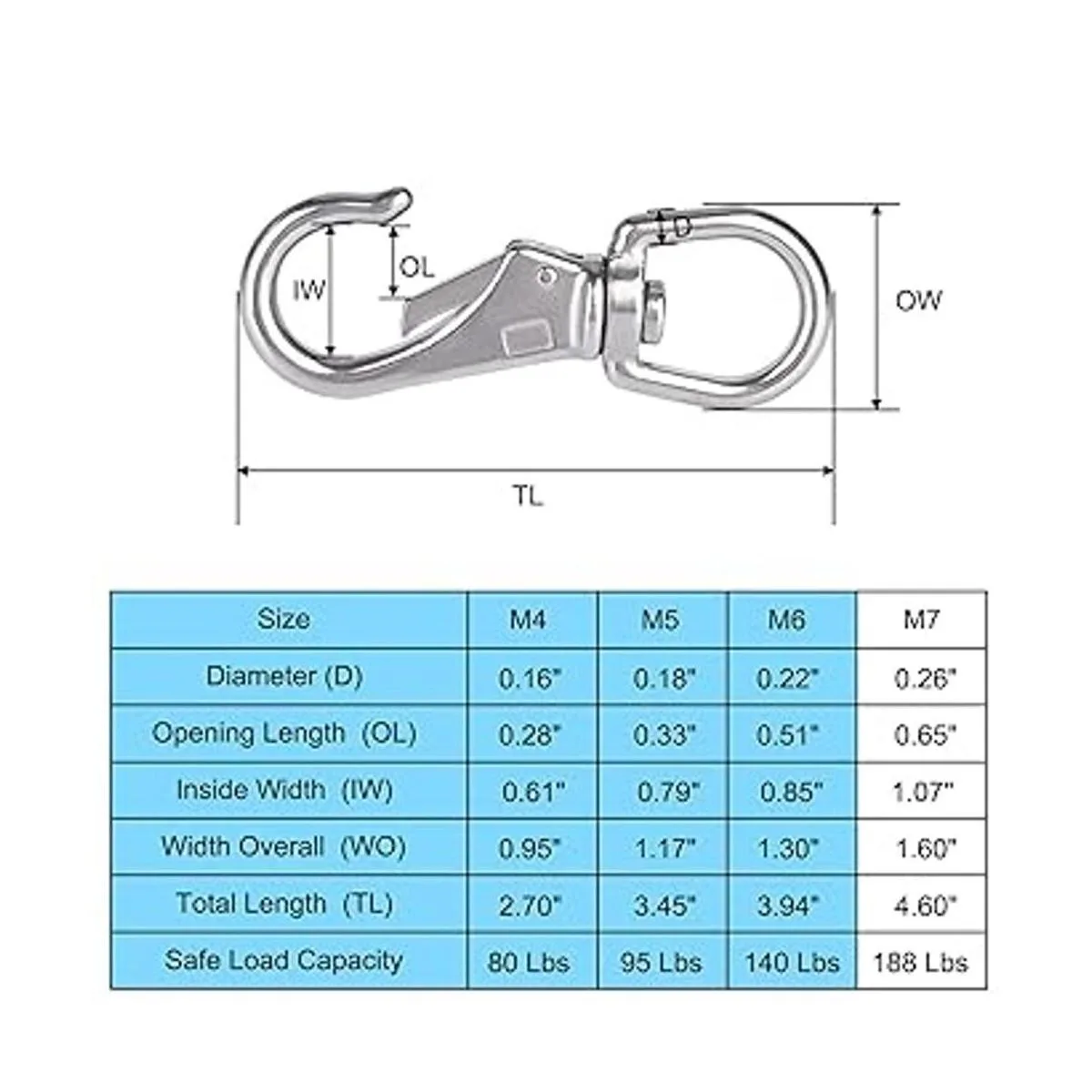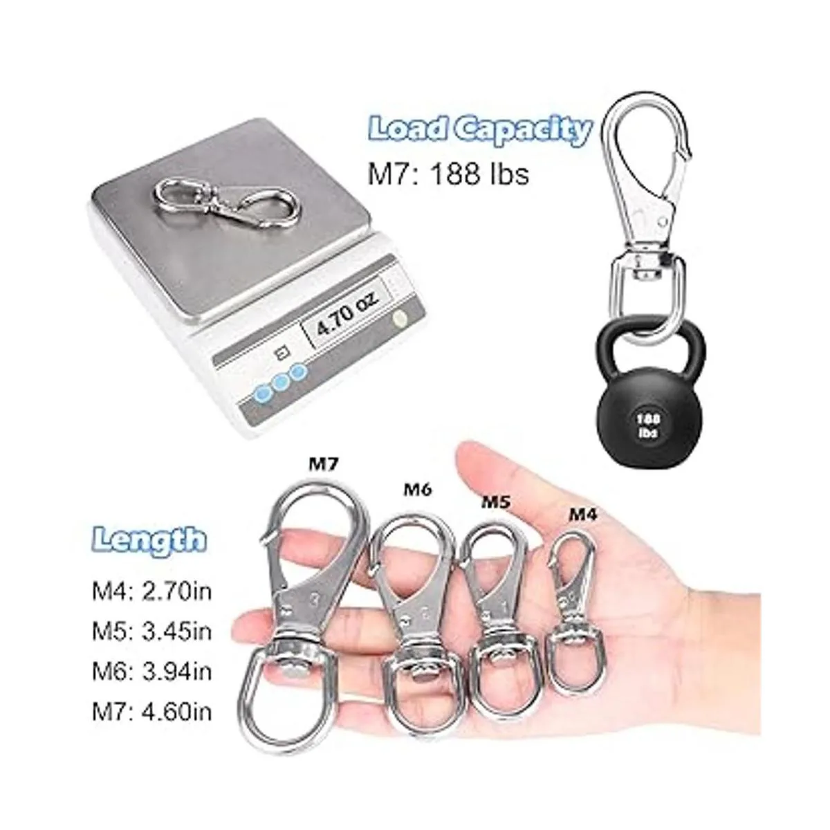 100 acero inoxidable: los ganchos giratorios están hechos de acero inoxidable 304, que es impermeable, resistente al óxido y a la corrosión que permiten que los ganchos se mantengan resistentes y duraderos en cualquier clima.