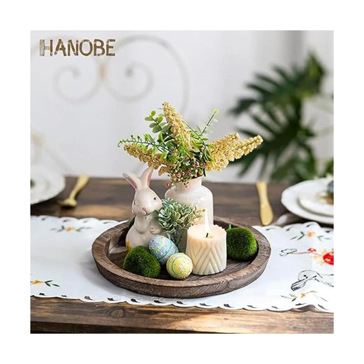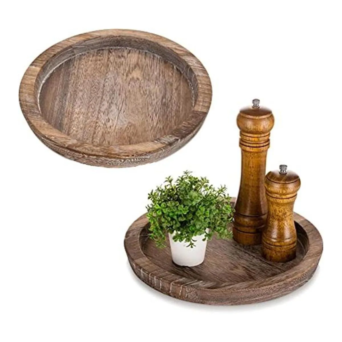 Hanobe Bandeja de madera rústica para servir juego de 2 bandejas decorativas redondas de madera para mayordomo, centro de mesa, bandeja otomana para cocina, decoración del hogar para mesa de café