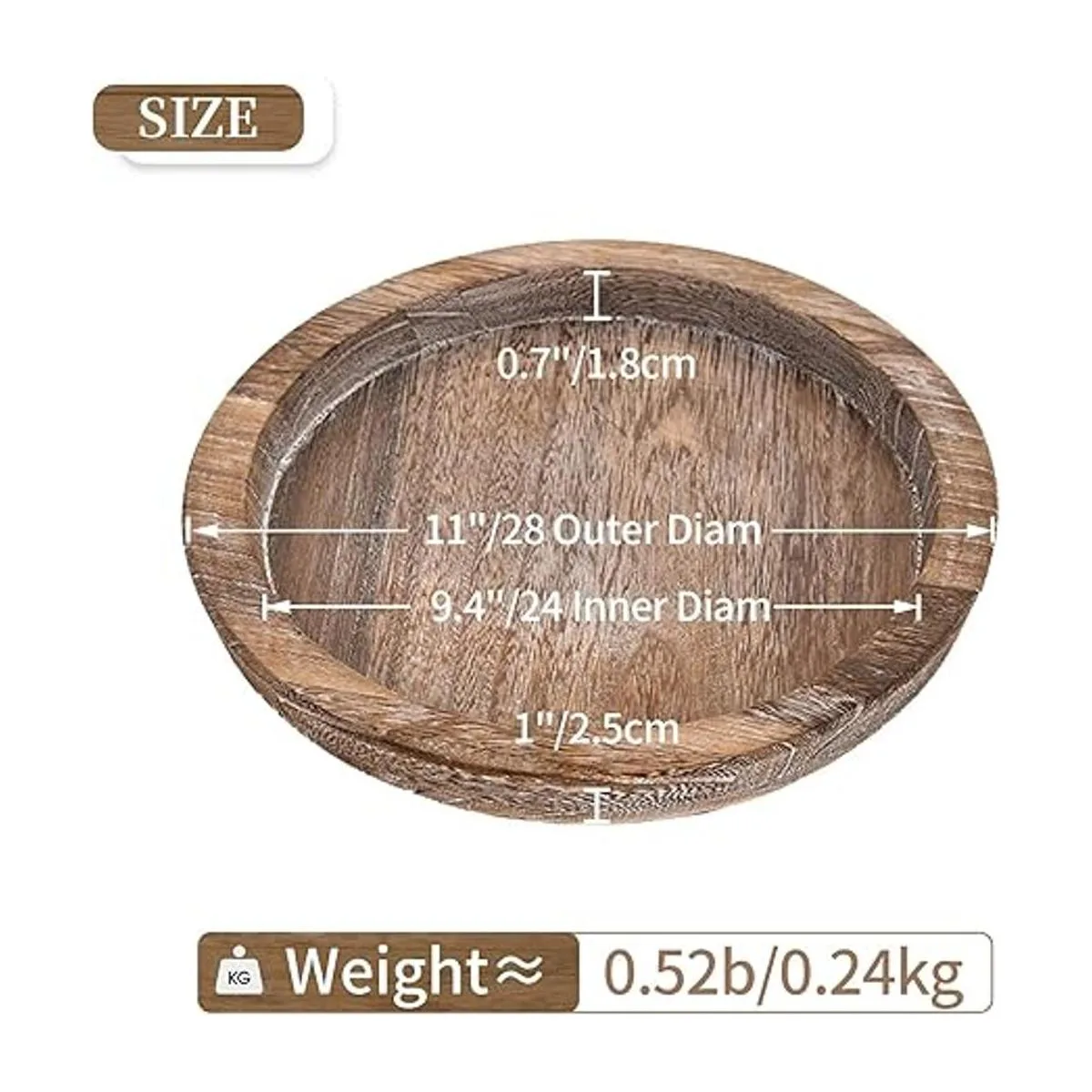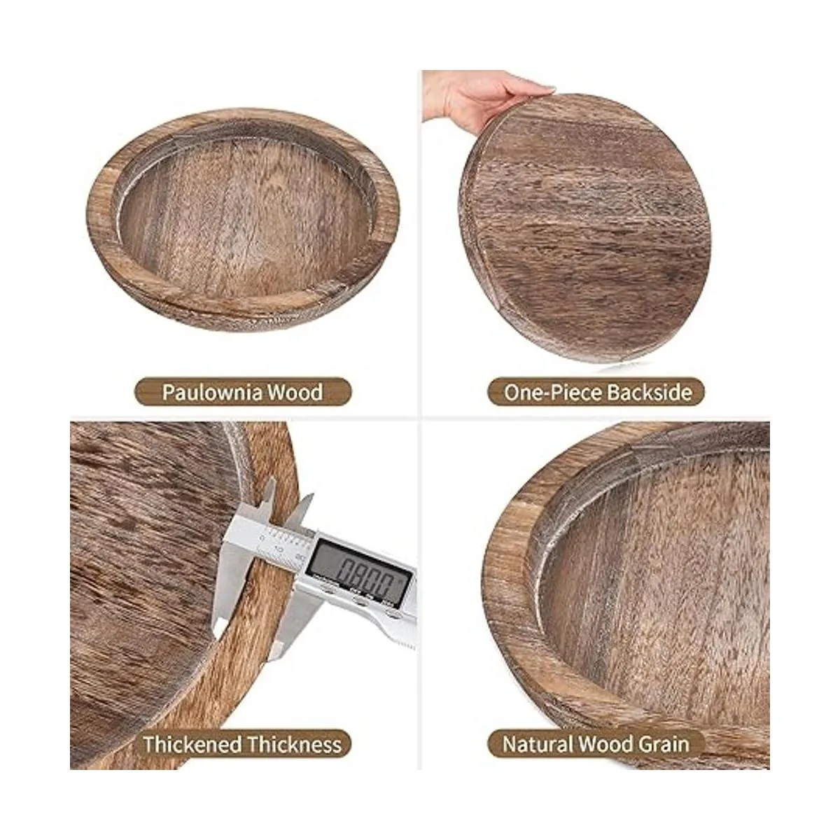 Alta calidad: hecho de madera de paulownia de alta calidad, duradera, resistente y súper ligera, alrededor de un 40 menos de peso que la madera ordinaria, resistente y útil durante un largo período de uso. El tamaño exterior perfecto de 10 pulgadas diámetro interior de 9.3 pulgadas para servir tu comida y bebida favorita para el desayuno en la cama, fiestas o para bodas.