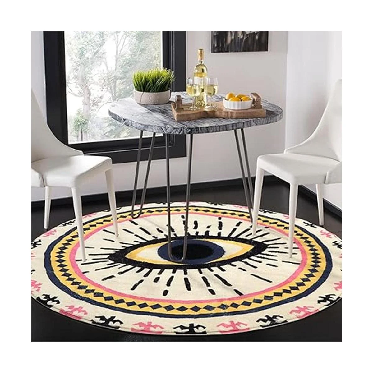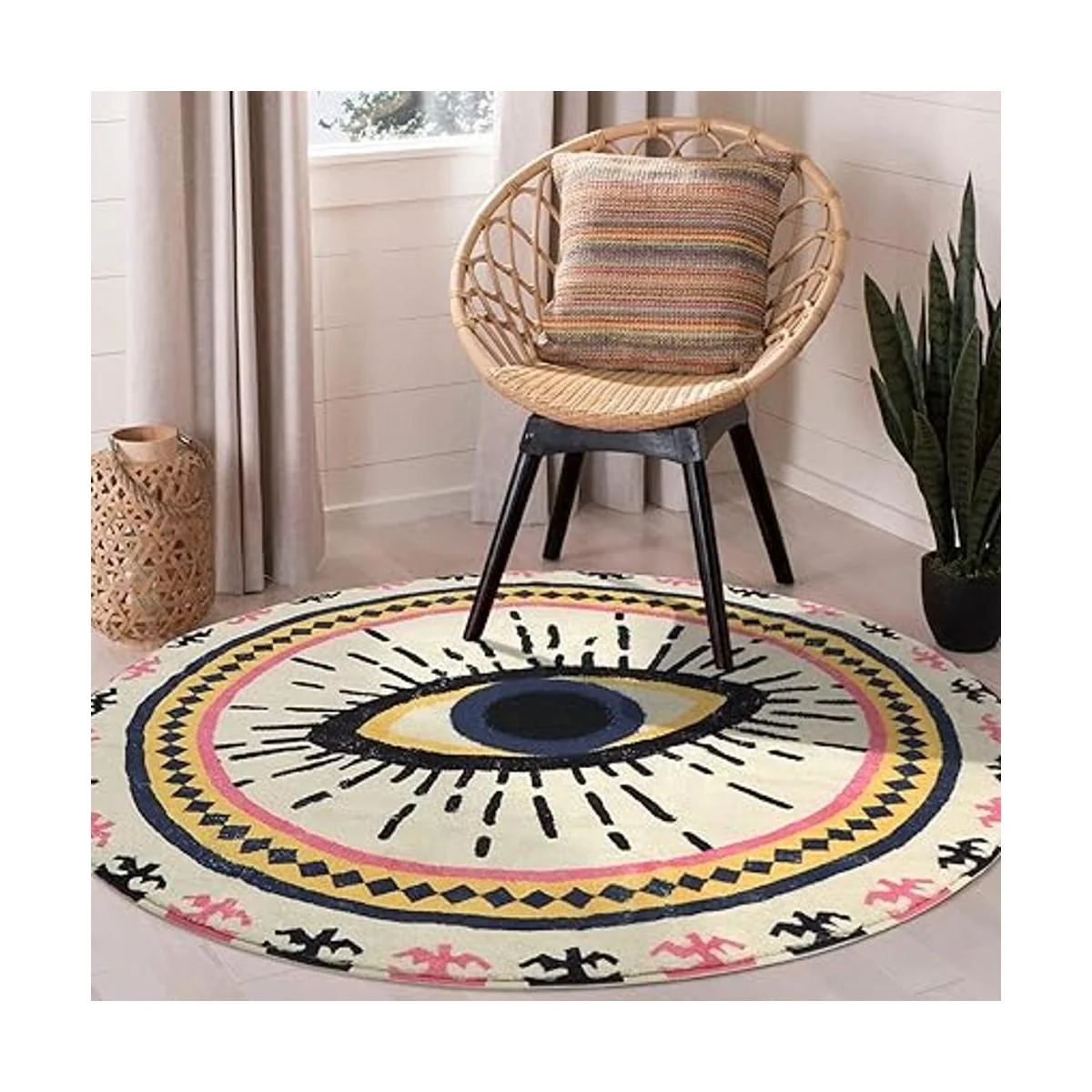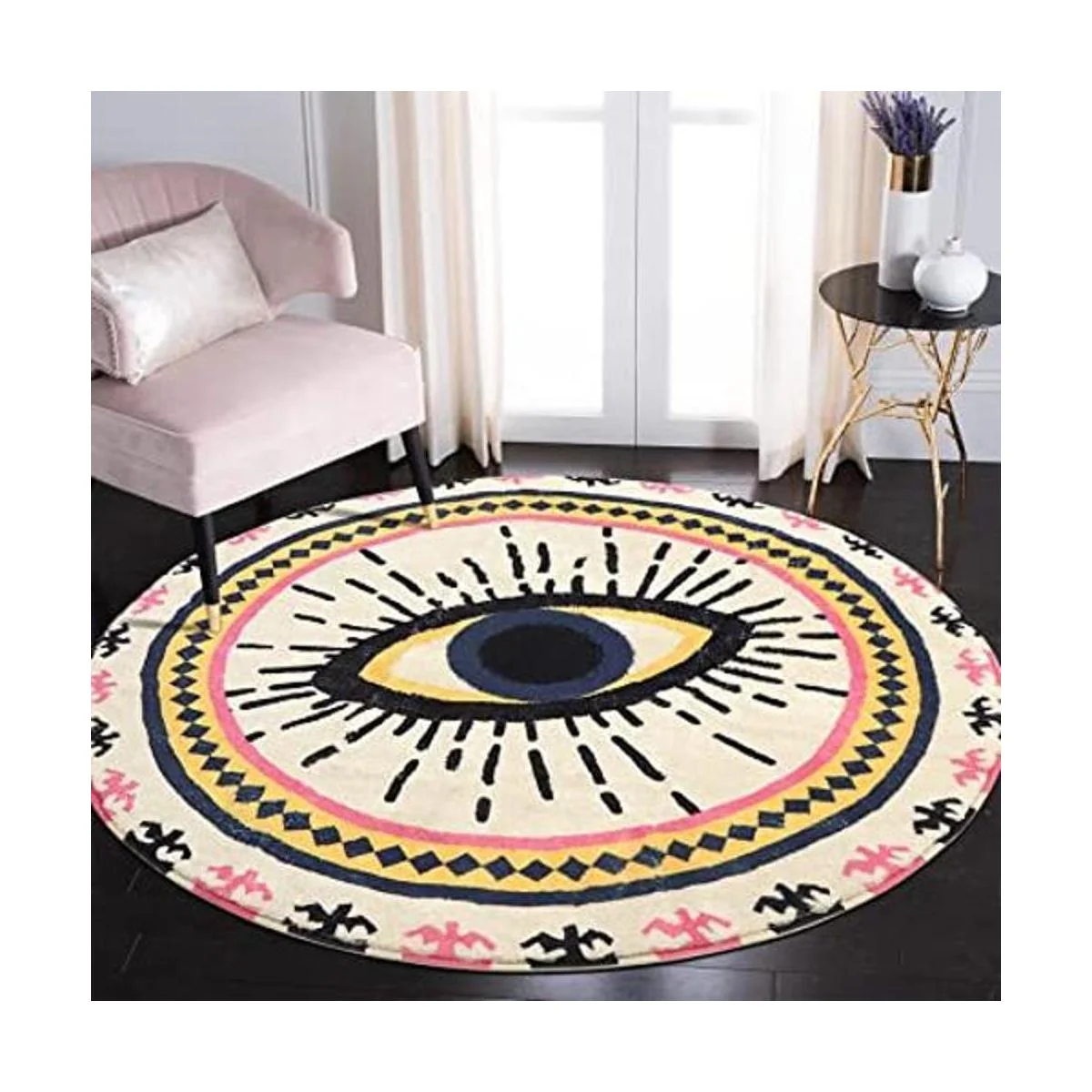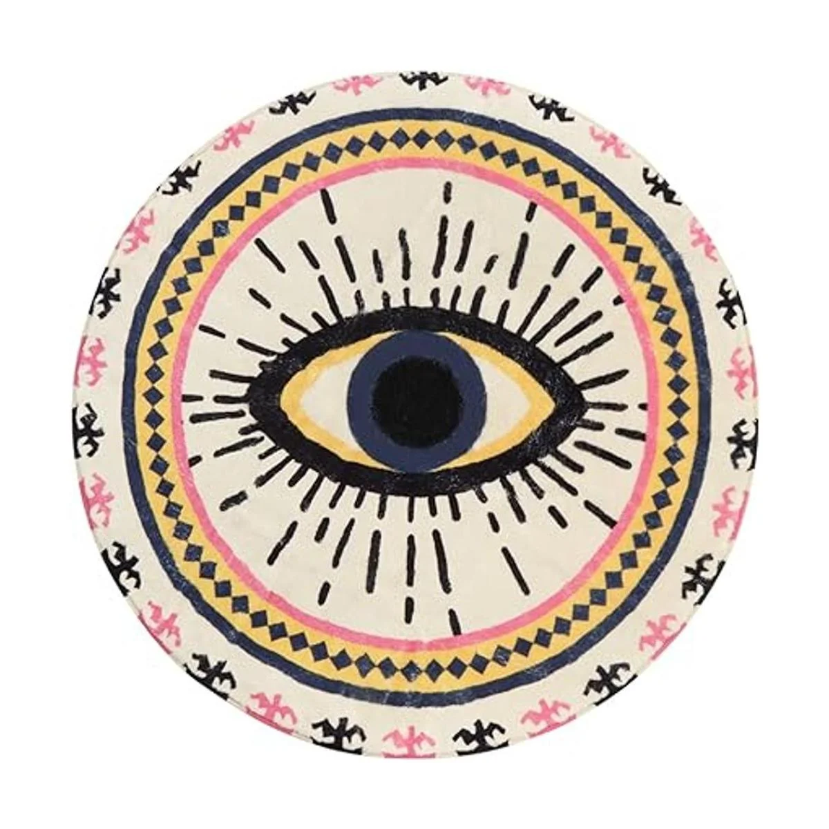 HAOCOO Tapete redondo de 4 pies con diseño contra el mal de ojo, de terciopelo muy suave, estilo vintage, antideslizante, estilo tribal, para dormitorio, sala, habitación o habitación de juegos