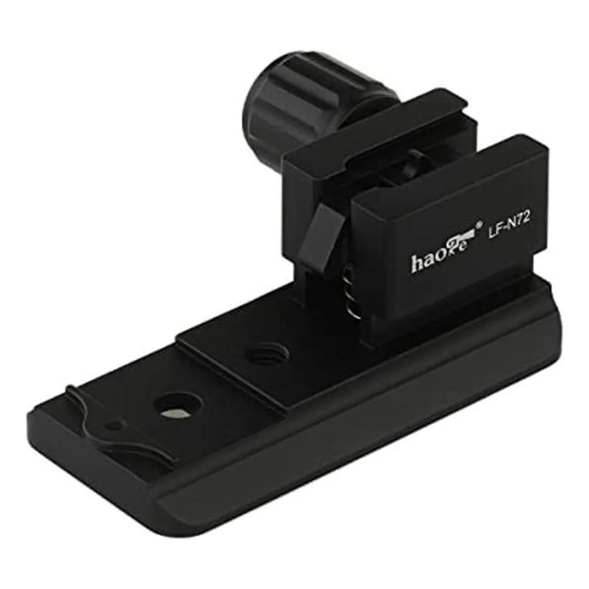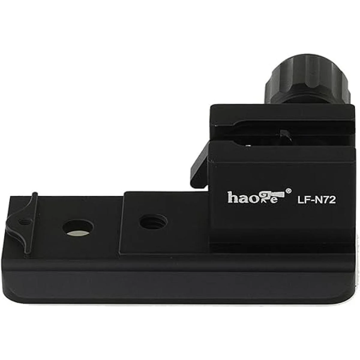 The Haoge LFN72 Lens Foot for Nikon Nikkor 70200mm f/2.8G ED VR VRII , 70200mm f/2.8E FL ED VR and 500mm f/5.6E PF ED VR replaces the stock lens foot with a Arcatype quick release plate.