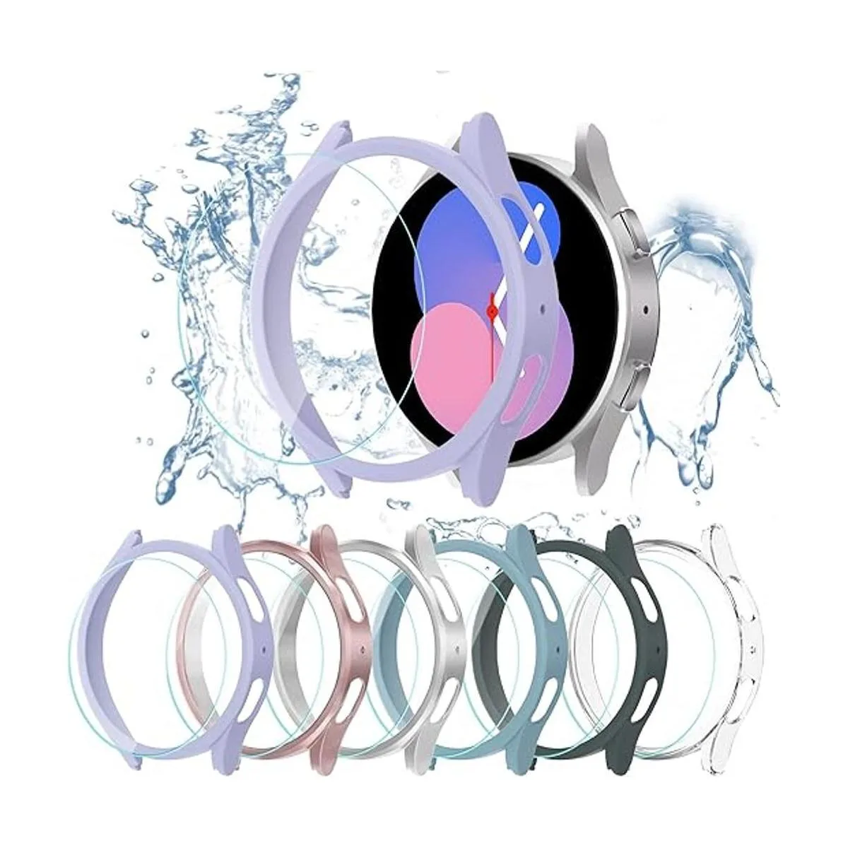 Haojavo Funda protectora de pantalla para Samsung Galaxy Watch 5Galaxy Watch 4 de 1.57 pulgadas, paquete de 6 fundas protectoras de policarbonato duro 8 unidades de película de vidrio templado para Galaxy Watch de 1.57 pulgadas, accesorios