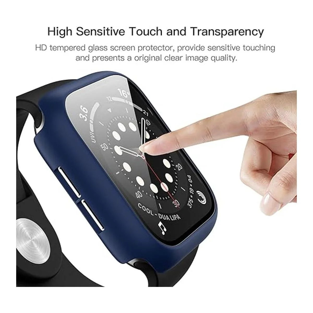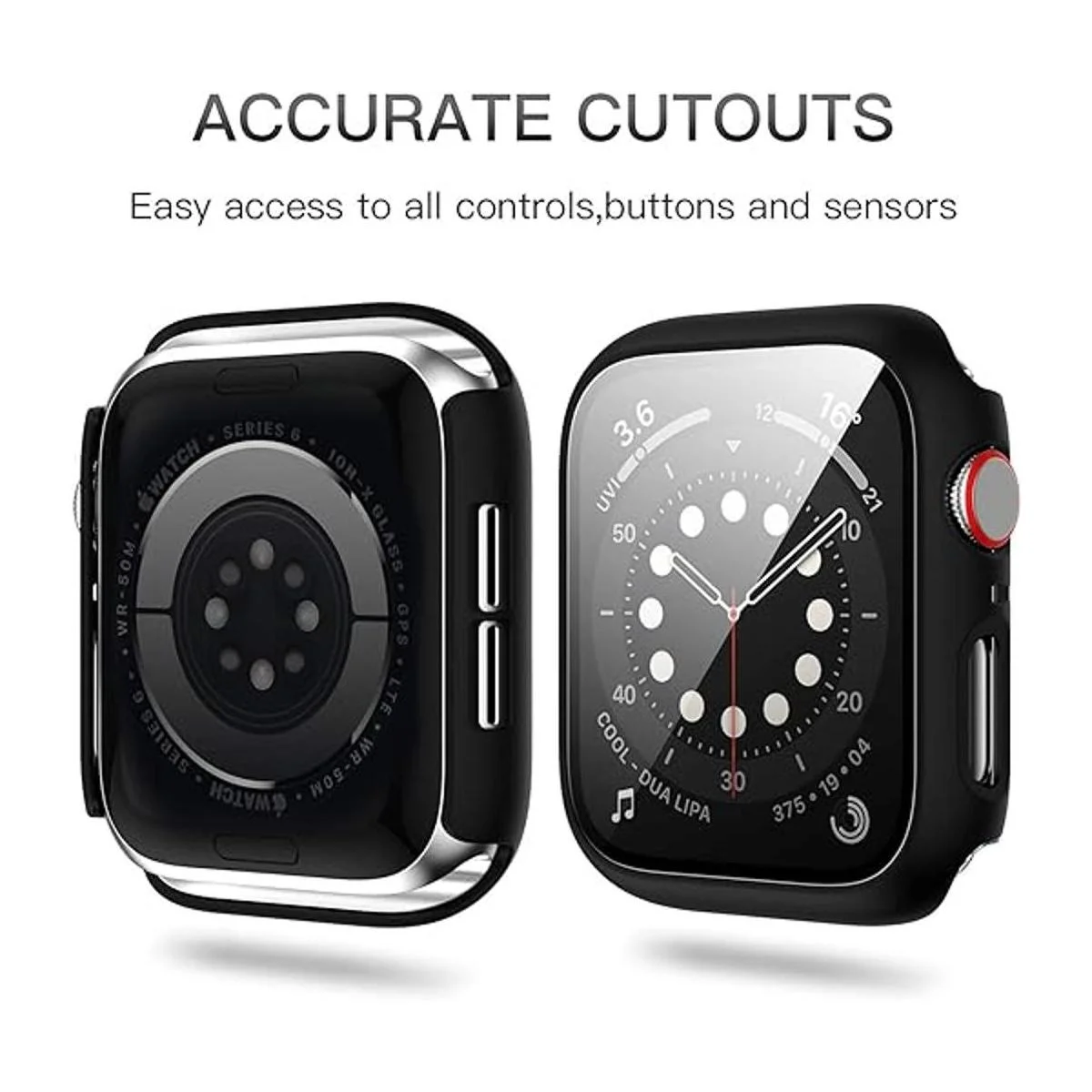 Protector de diseño 2 en 1: funda rígida integrada en protector de pantalla de vidrio templado transparente ultrafino que no tiene el problema táctil, cubre tanto la pantalla como los bordes, protege tu Apple Watch de arañazos, golpes y caídas accidentales.